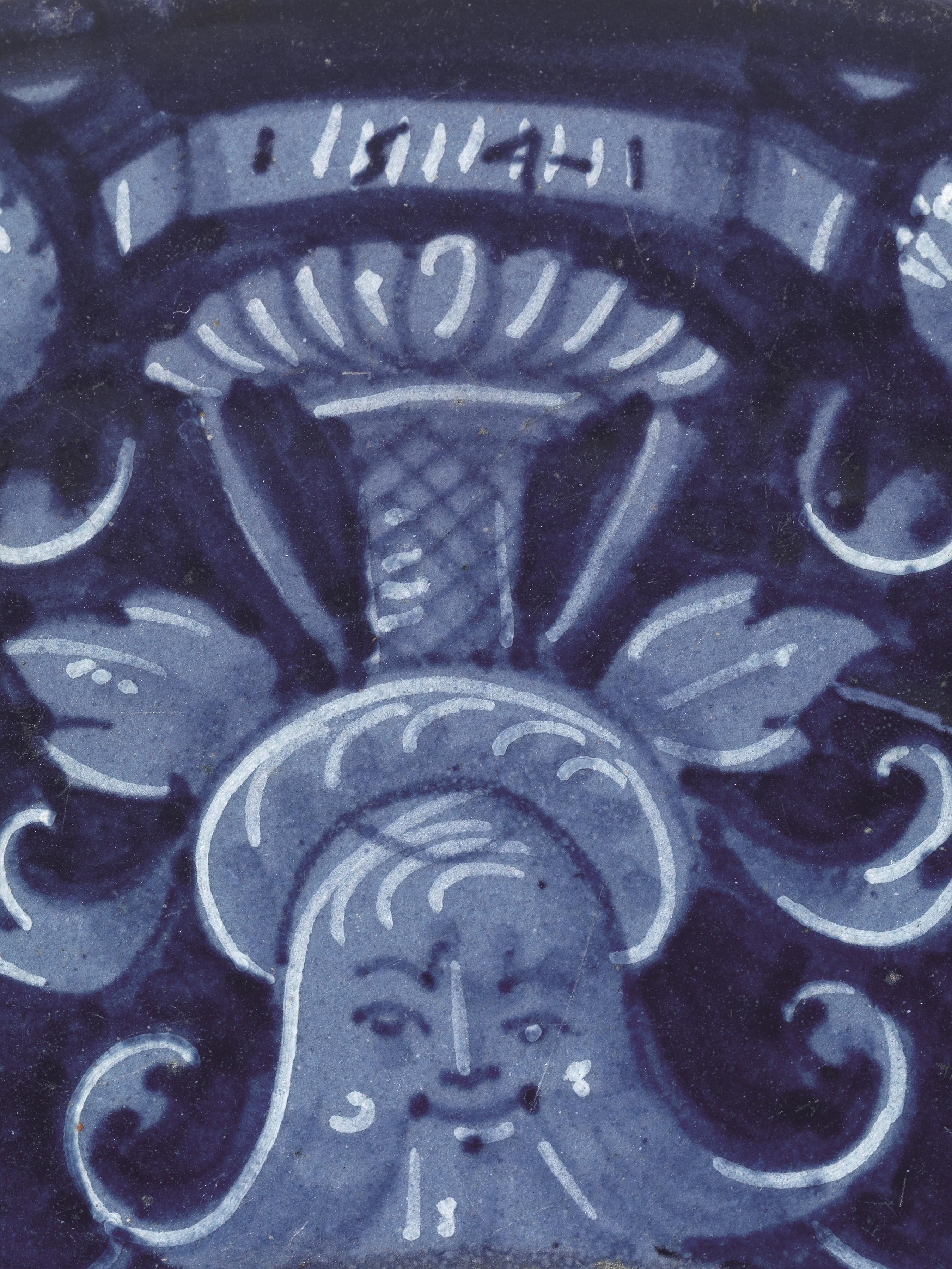 Earthenware, covered with a ‘berettino’ glaze and painted in light yellow, ochre yellow, turquoise, and white highlights