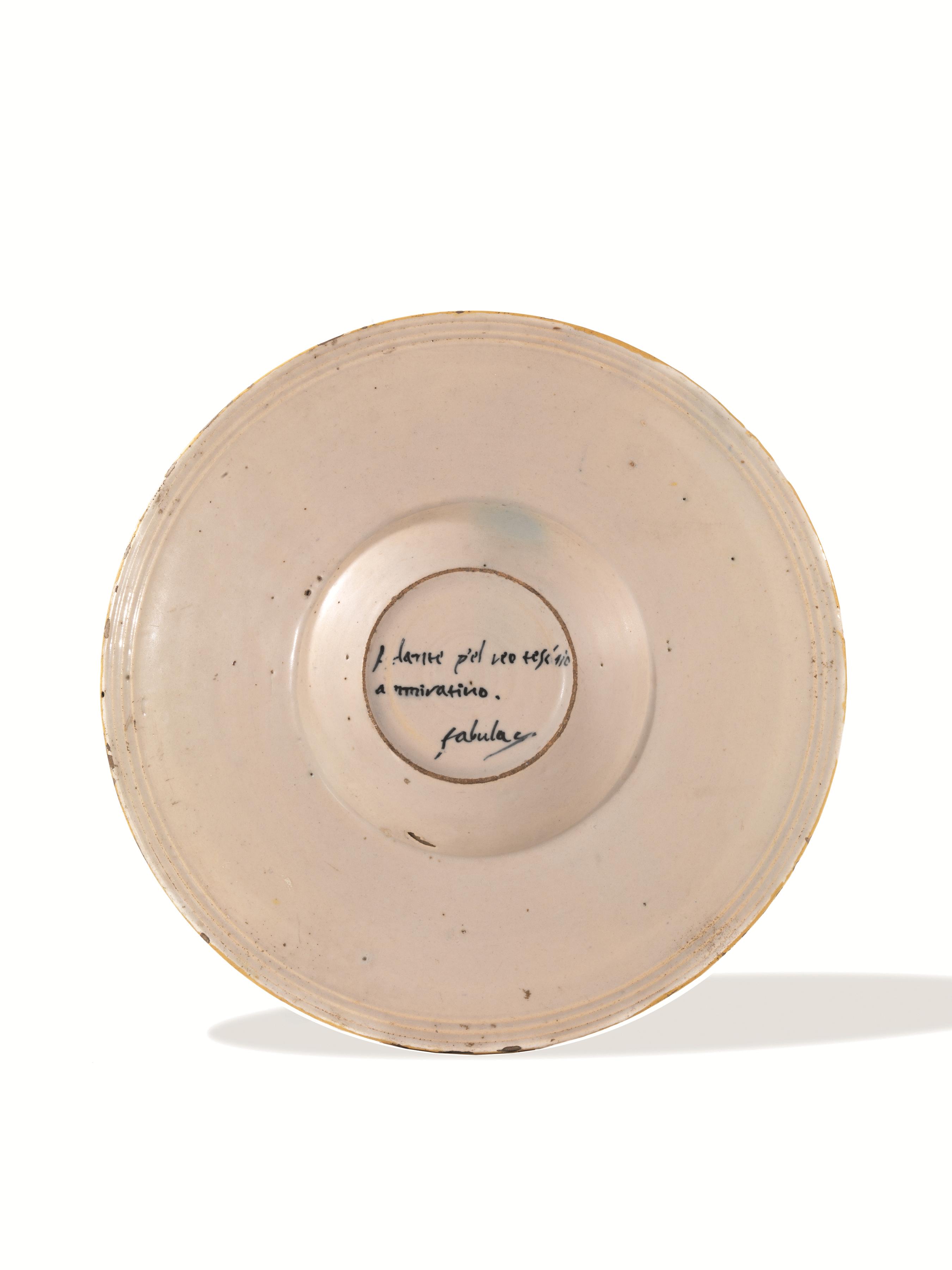 On the back, beneath the base, inscription in blue ‘A dann’p’el reo tesc iio/ anmiratino/ fabula y’