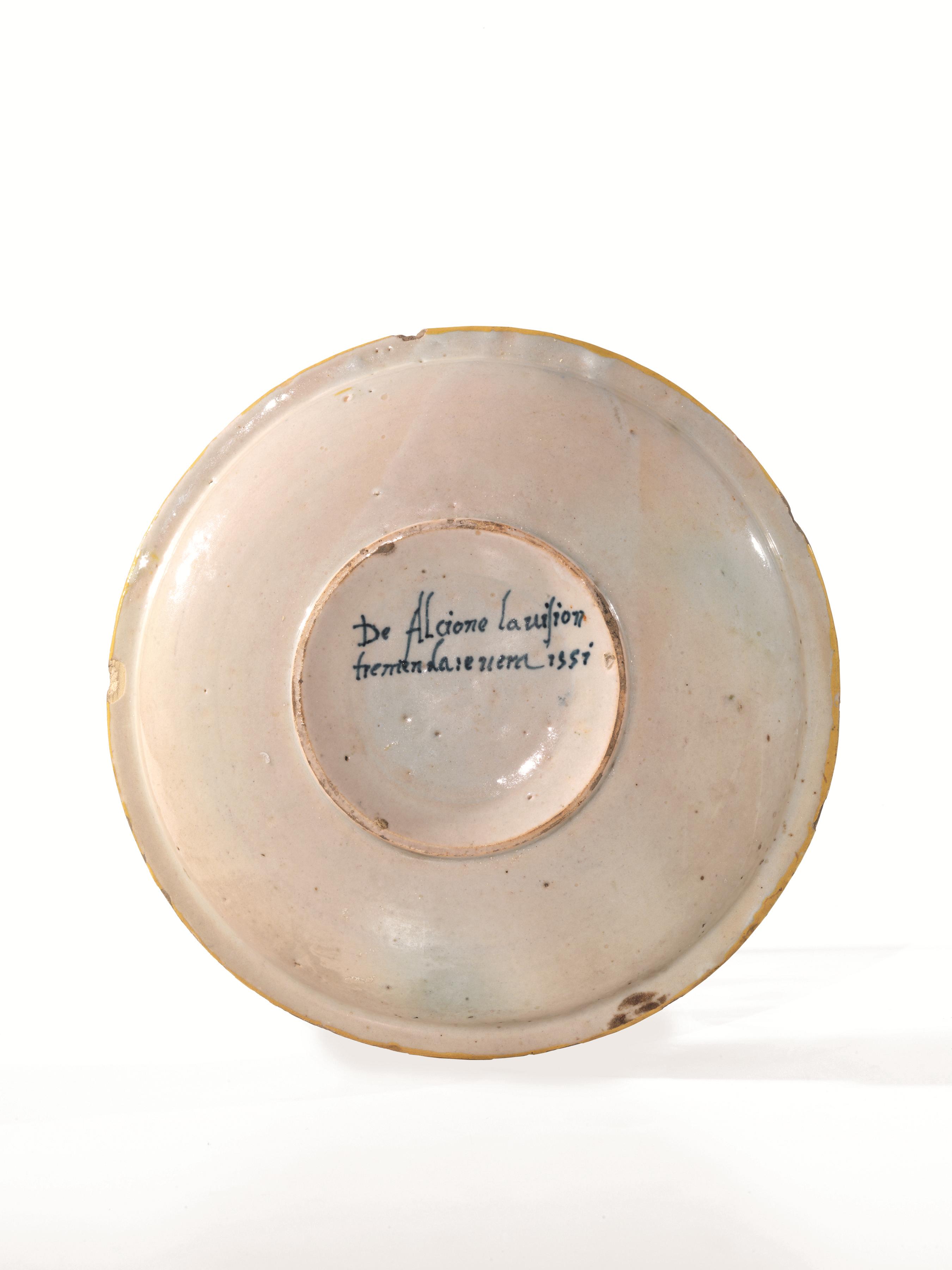 On the back, beneath the base, inscription in blue ‘De Alcione la vision / tremenda: e vera 1551’