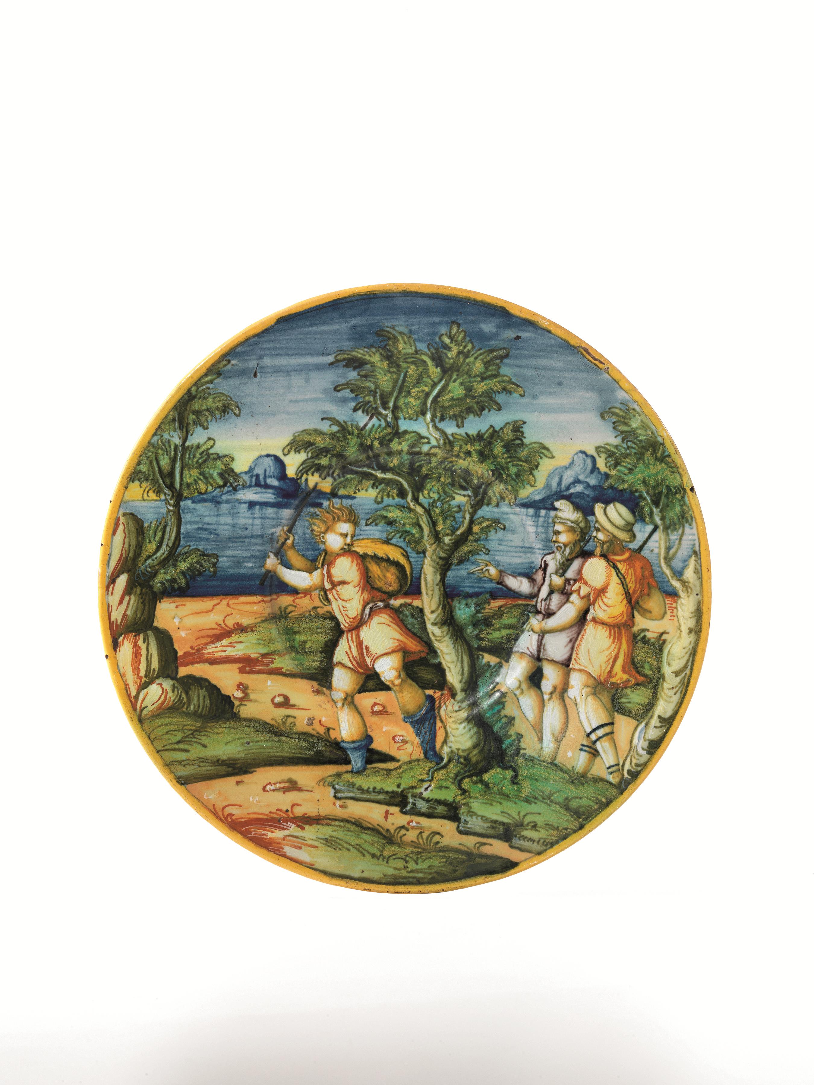 On the back, beneath the base, round hand-written label ‘6176’; rectangular label, typewritten with ‘6176 / VENEZIA / 1565 CIRCA... PIATTO ISTORIATO / DELLA / BOTTEGA DI MAESTRO LUDOVICO’ (hardly readable)