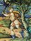 Maiolica decorata in policromia con giallo, arancio, verde e bruno di manganese