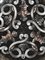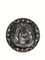 Sul verso la superficie è interamente ricoperta da smalto nero decorato da una corona fogliata lungo la tesa e un tralcio sinuoso con piccole foglie attorno al centro. Quasi tutta la superficie del centro è ricoperta da un motivo decorativo a grisaille a simulare un lavoro a sbalzo su metallo. Qui volute intrecciate, centrate da una rosetta, s’innestano in quattro differenti mascheroni policromi, a loro volta uniti da panneggi centrati da fruttini. In una delle volute, sotto il mascherone con i capelli mossi dal vento, si legge chiaramente la sigla dell’autore: “I.C.”