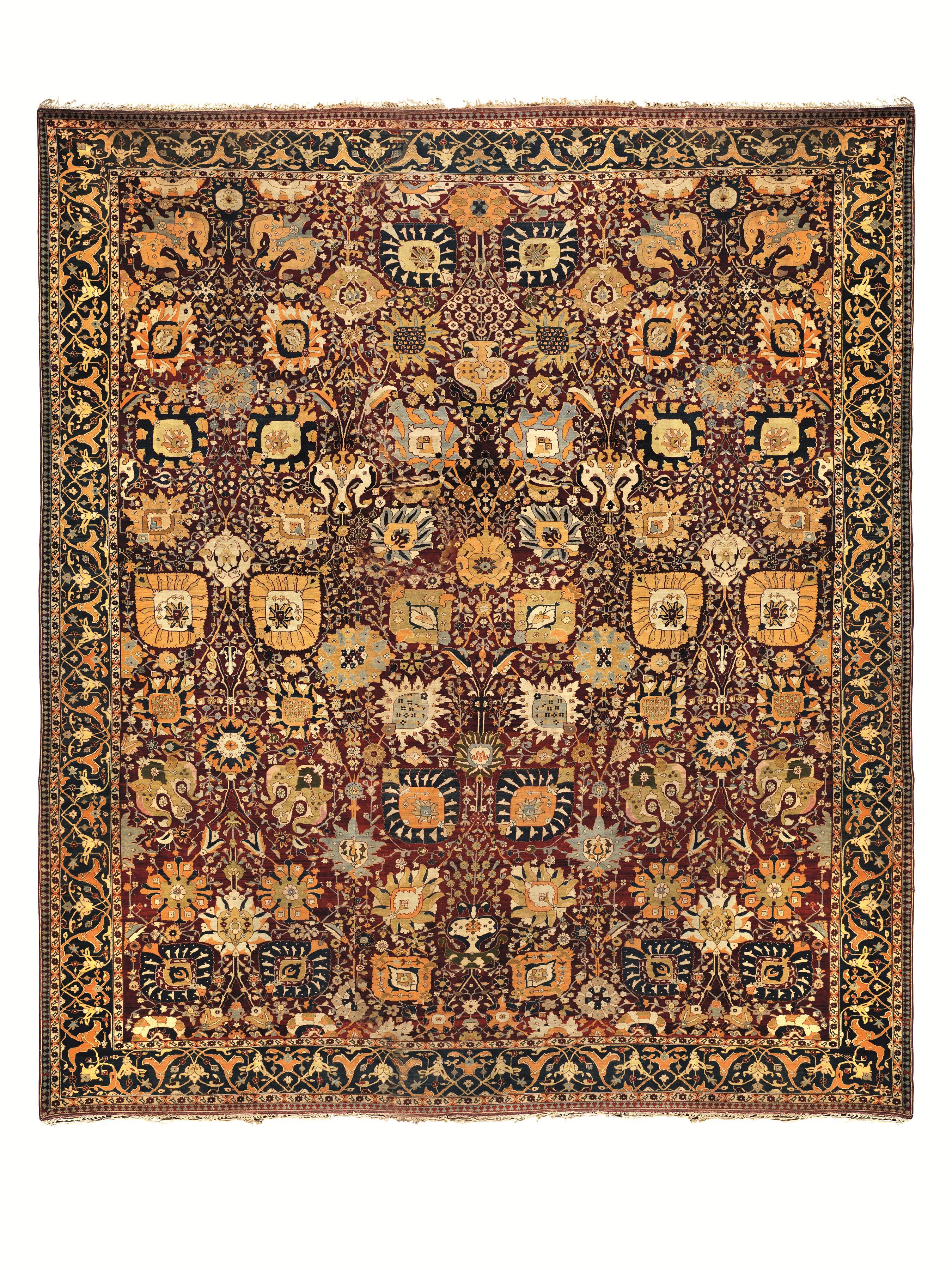 Lotto 7 | TAPPETO AGRAIndia del Nord, circa 1890Nell’elegante campo rosso bordeaux si...