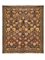 Nell’elegante campo rosso bordeaux si stagliano diversi motivi di corolle di fiori, tralci di vite, e vasi ripresi dall'antico motivo dei Kirman a Vasi del XVII secolo, il tutto contornato da un imponete bordura blu scuro decorata da palmette e tralci.