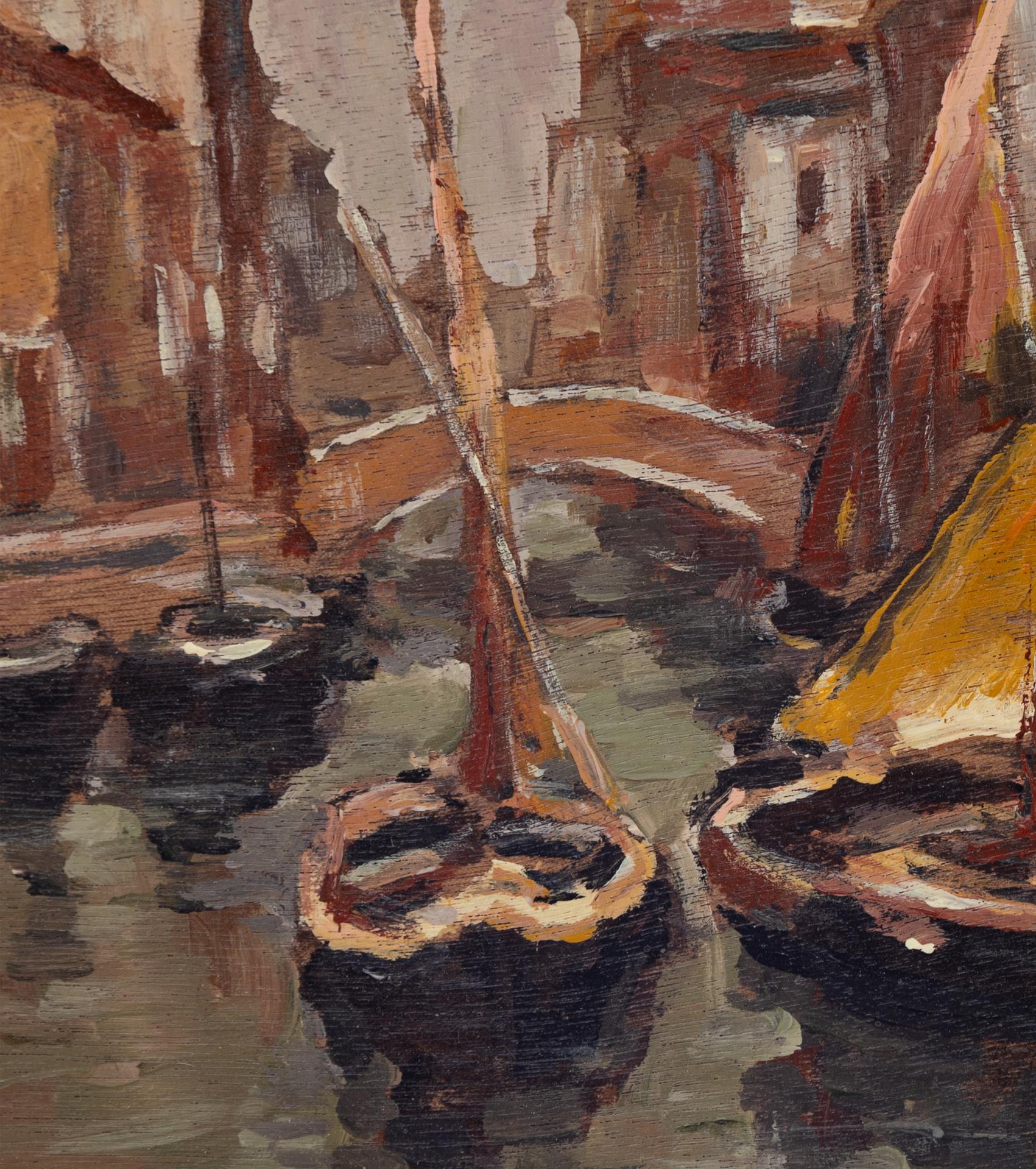 Angelo Brombo - Canale a Venezia - Chioggia (VE) 1893 - Venezia 1962 - Olio su tavola cm 27x34,5