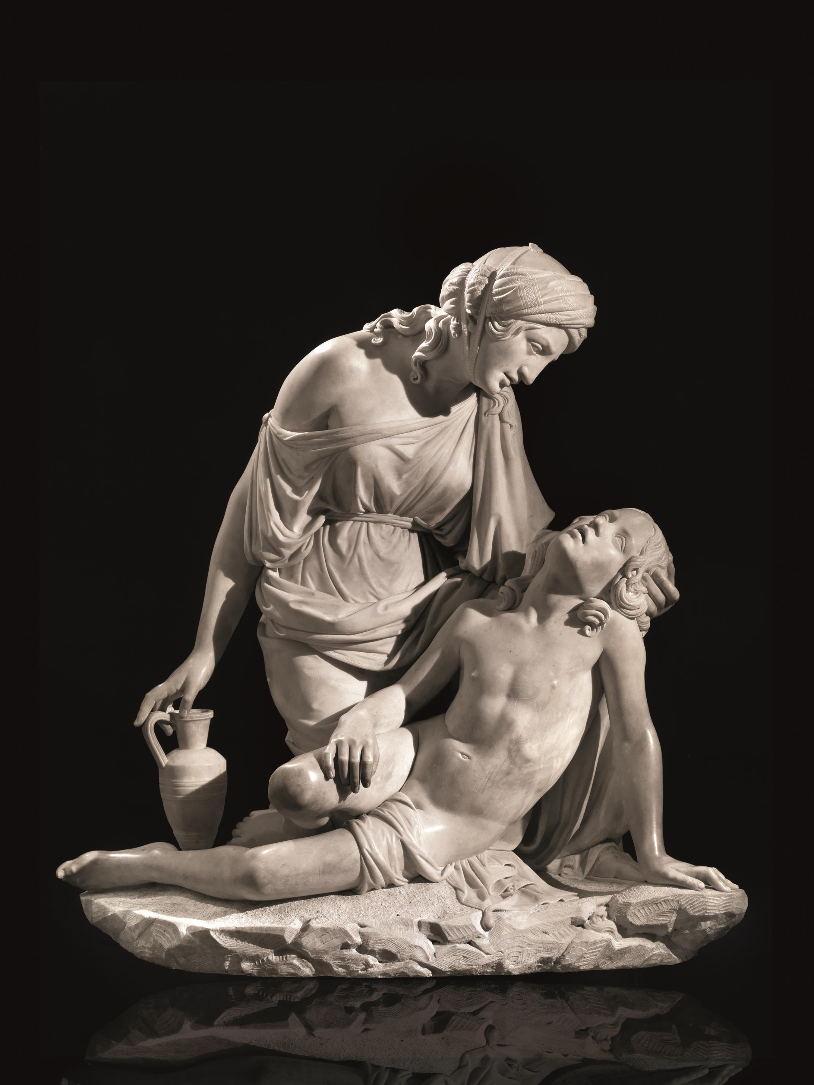 Lodovico Caselli (Siena 1817 - post 1862) AGAR E ISMAELE marmo, cm 120x114,...