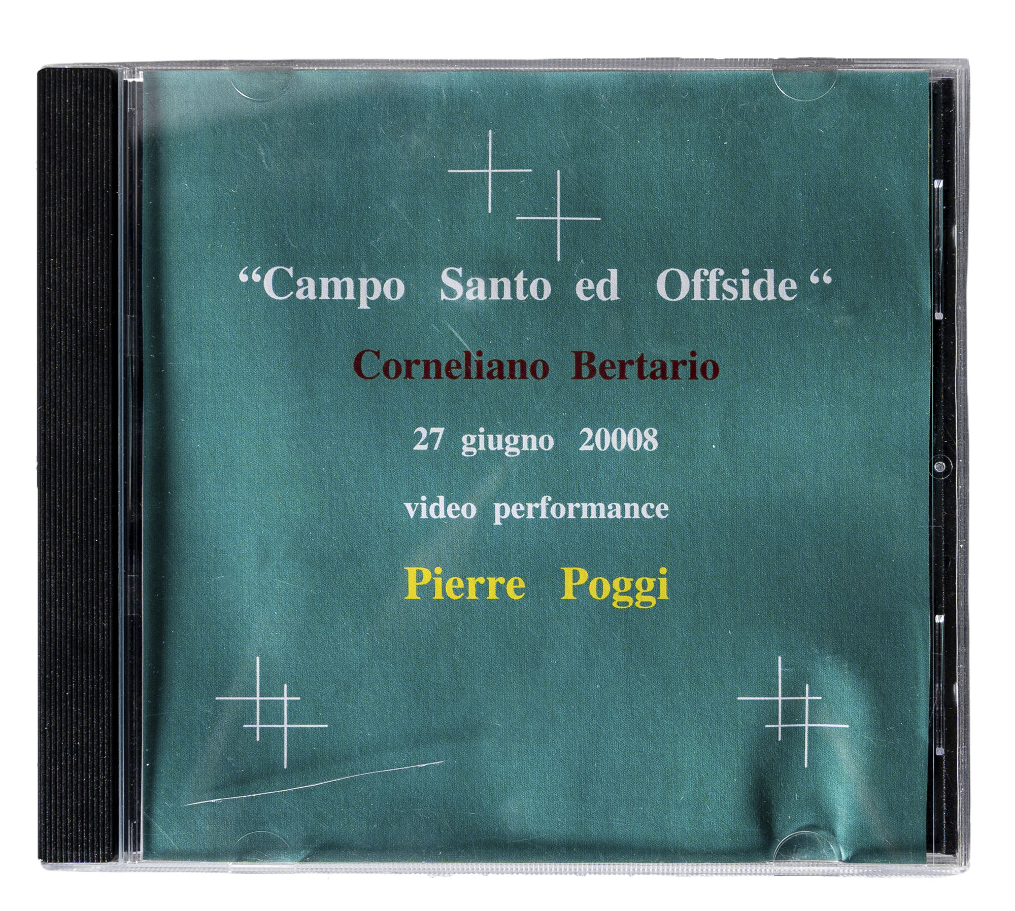 PIERRE POGGI(1954)Campo Santo ed offside2008Dvd, es. 2/2, video della performance realizzata in occasione della mostra 'Campo santo ed offside' presso il Castello Borromeo, Cornegliano Bertario, Milano (27 giugno 2008)PROVENIENZA:Galleria Federico Bianchi Contemporary Art, Milano (etichetta all'interno)Collezione privata, Milano