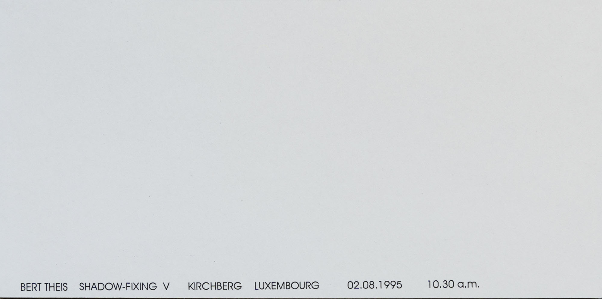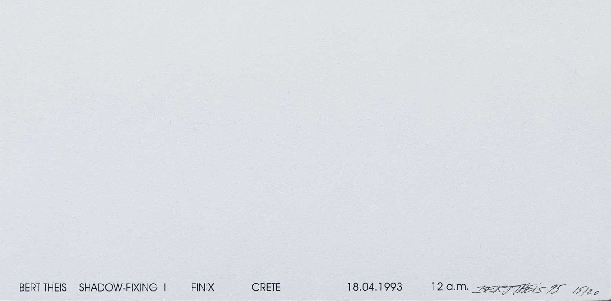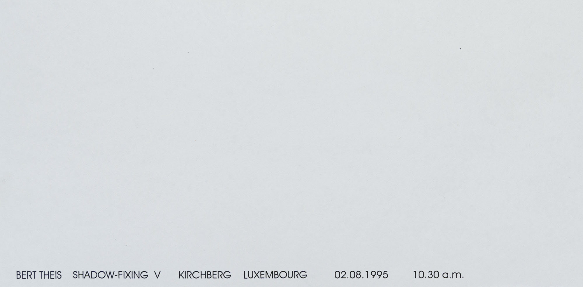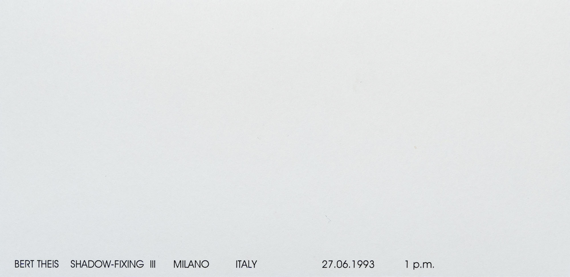 BERT THEIS(1952 - 2016)Shadow-fixing1995Cofanetto comprendente 17 stampe, es. 15/20Dimensioni di ciascuna stampa: 9 x 18 cmDimensioni complessive: 10,5 x 19,5 cmFirma, data e numerazione al retro di una stampaOpera registrata presso l'Archivio Bert Theis, HeffingenPROVENIENZA:Collezione privata, LeccoESPOSIZIONI:30 marzo - 25 agosto 2019, Building Philosophy - Cultivating Utopia, Mudam, Lussemburgo