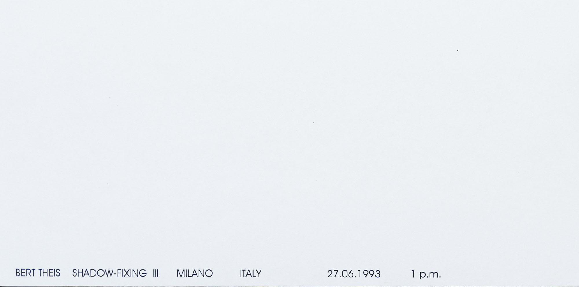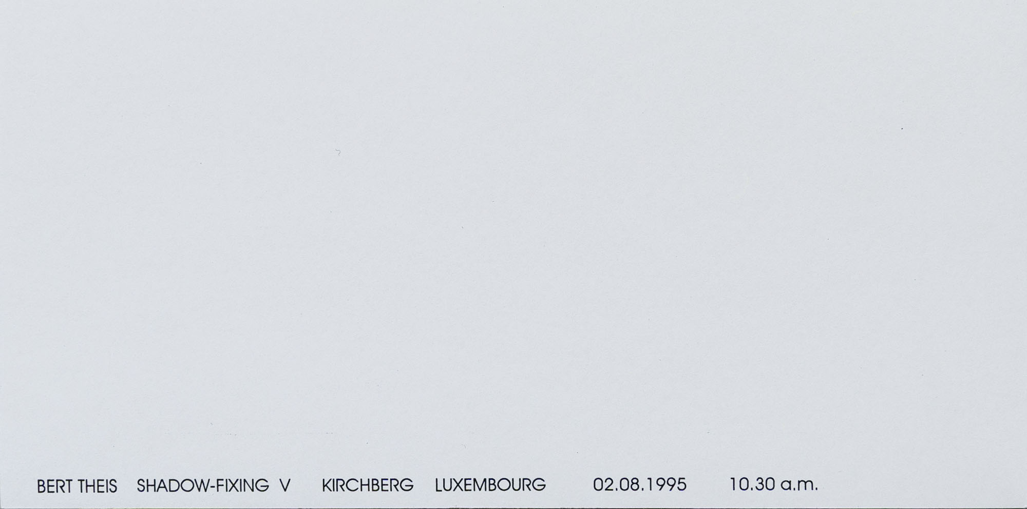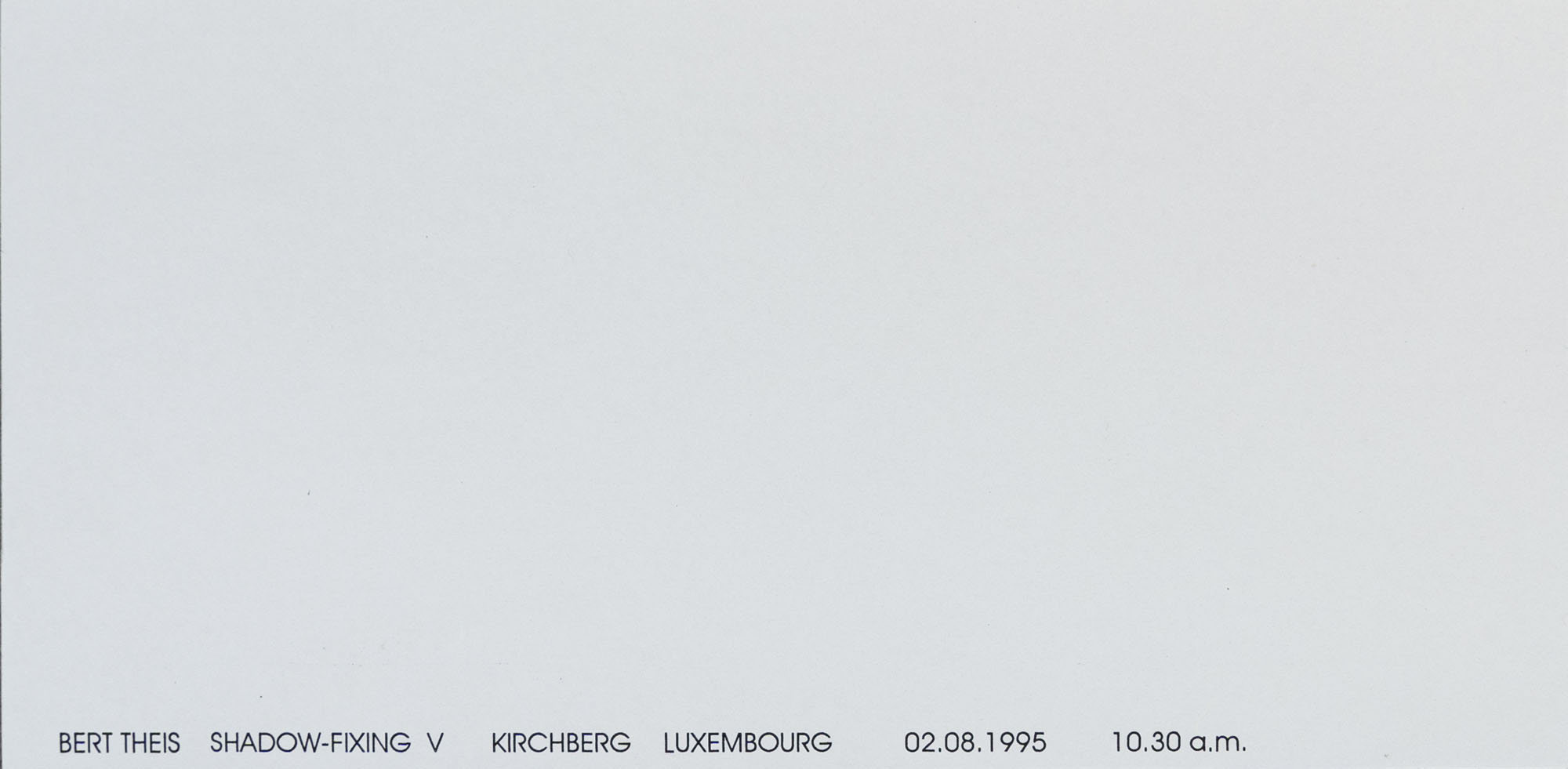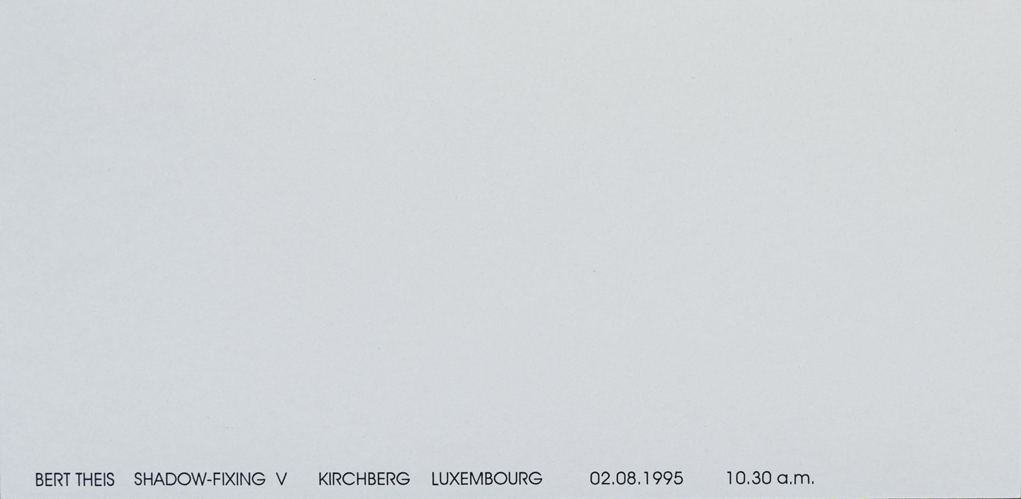 BERT THEIS(1952 - 2016)Shadow-fixing1995Cofanetto comprendente 17 stampe, es. 15/20Dimensioni di ciascuna stampa: 9 x 18 cmDimensioni complessive: 10,5 x 19,5 cmFirma, data e numerazione al retro di una stampaOpera registrata presso l'Archivio Bert Theis, HeffingenPROVENIENZA:Collezione privata, LeccoESPOSIZIONI:30 marzo - 25 agosto 2019, Building Philosophy - Cultivating Utopia, Mudam, Lussemburgo