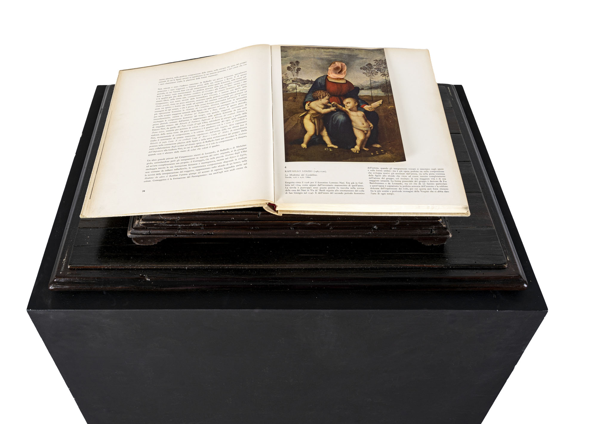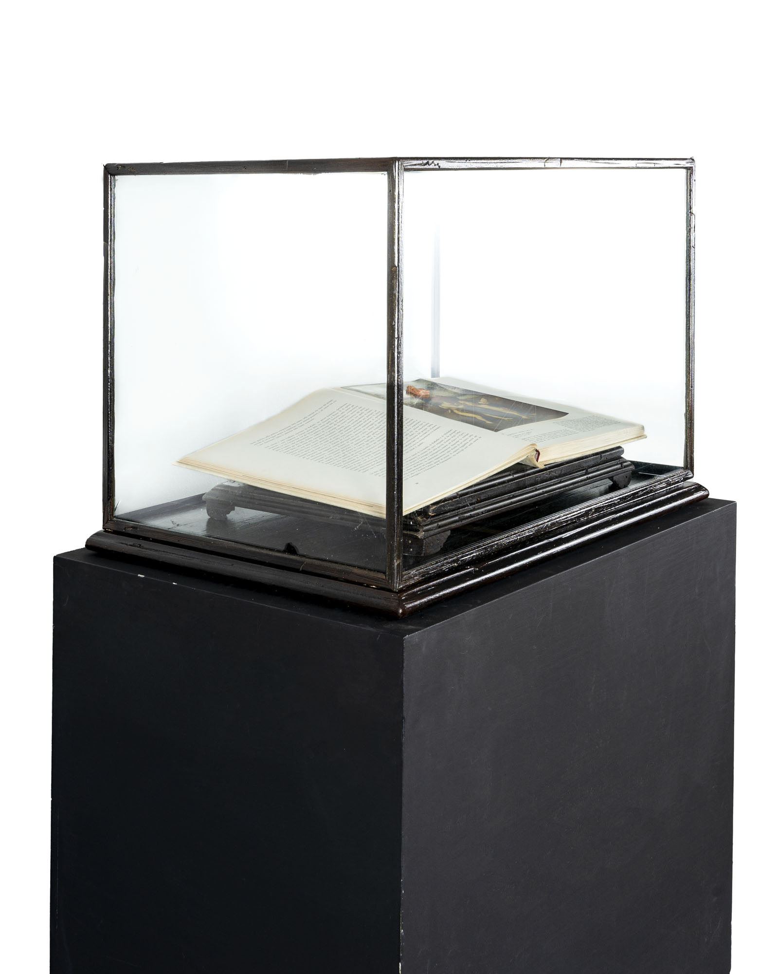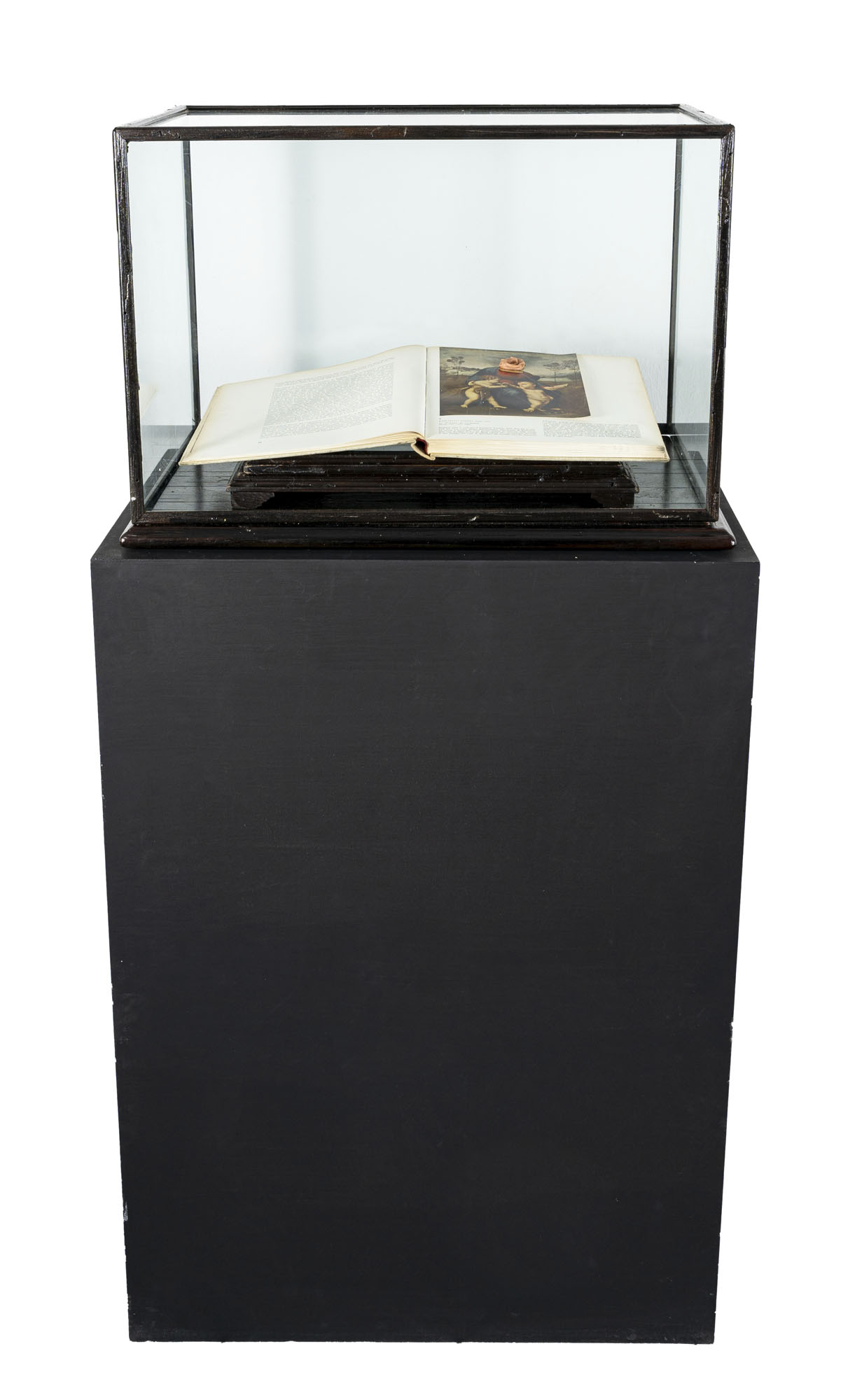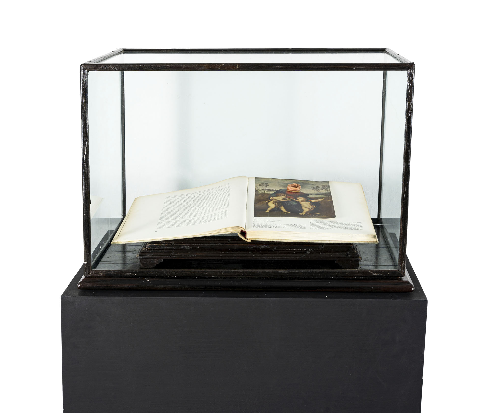 LUCA STOPPINISenza titolo (Madonna del cardellino)2006Installazione composta da una base in legno, leggio, libro, chewingum rosa e teca in legno e vetro, esemplare unico152 x 75 x 53,5 cmOpera accompagnata da scheda firmata dall'artistaPROVENIENZA:Atelier dell'artistaCollezione privata, Milano