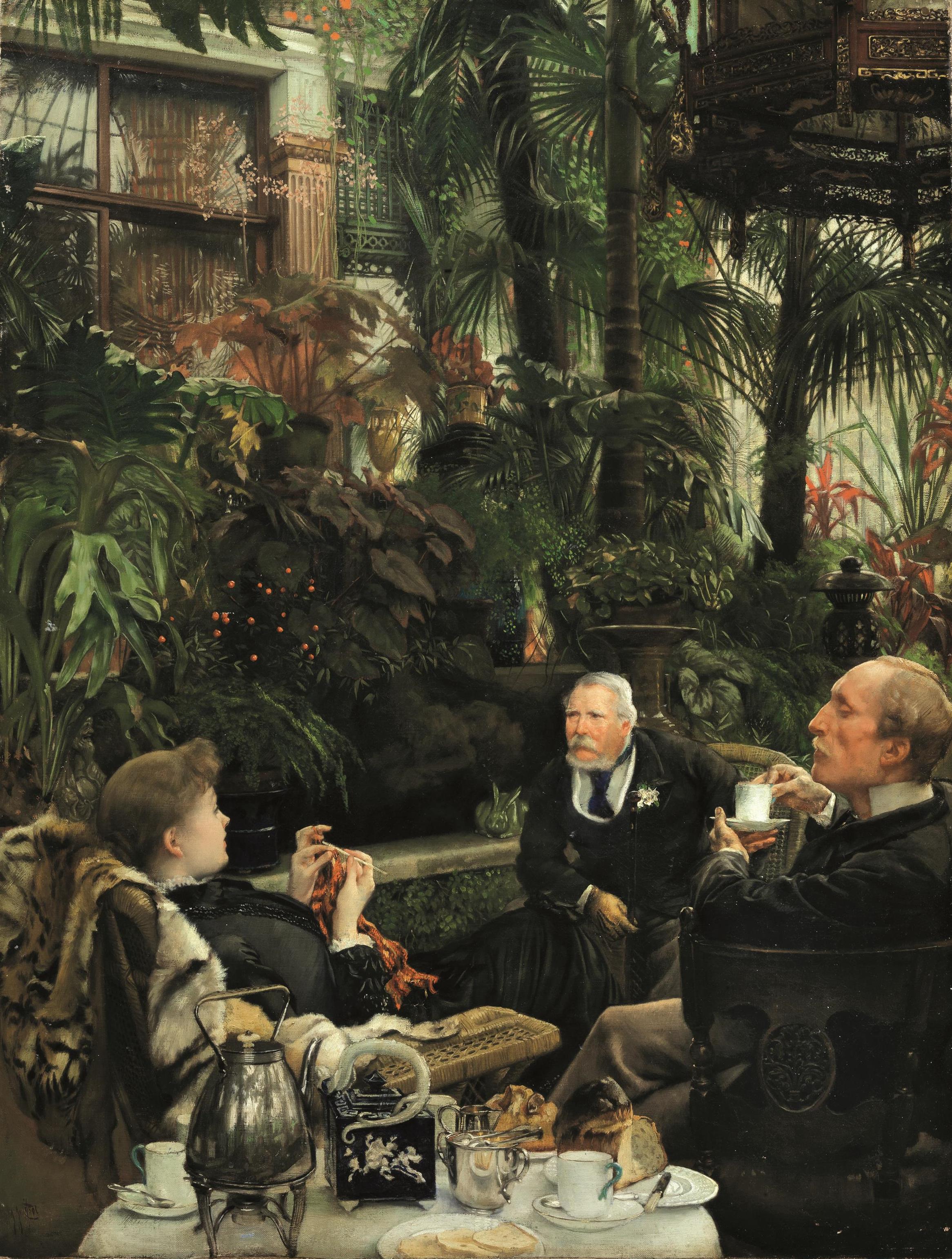 I Rivali è un capolavoro pittorico di precisione calligrafica e caratterizzazione che condensa in sé l'agiatezza e gli ambienti in cui si svolgeva la vita dell'alta società tra la fine dell'800 e i primi del '900 in Europa. In questa bellissima opera, l’anglofilo artista francese James Tissot dipinge non solo la donna che ama, ammirata da altri uomini, ma anche l'impressionante giardino d'inverno affollato di piante esotiche che egli fece costruire adiacente all'elegante studio della sua casa londinese, acquistata grazie allo sfolgorante successo ottenuto producendo e vendendo arte ai collezionisti inglesi nei primi anni Settanta dell'Ottocento.