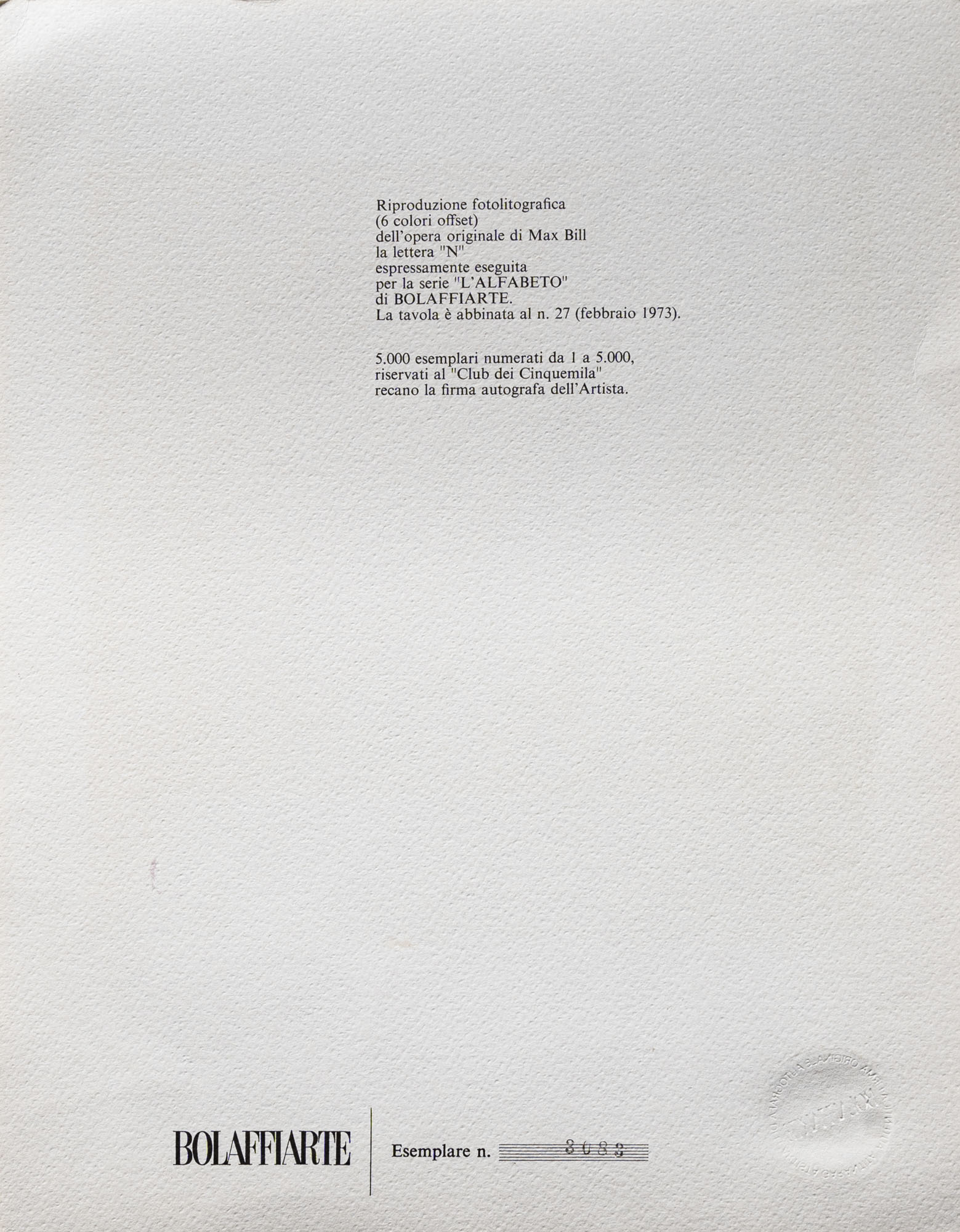 MAX BILL(1908 - 1994)NLitografia, es. 3083/5000, BolaffiArte (timbro a secco)30 x 23,5 cmFirmata a matita in basso a destraNumerazione al retroPROVENIENZA:Collezione privata, Milano
