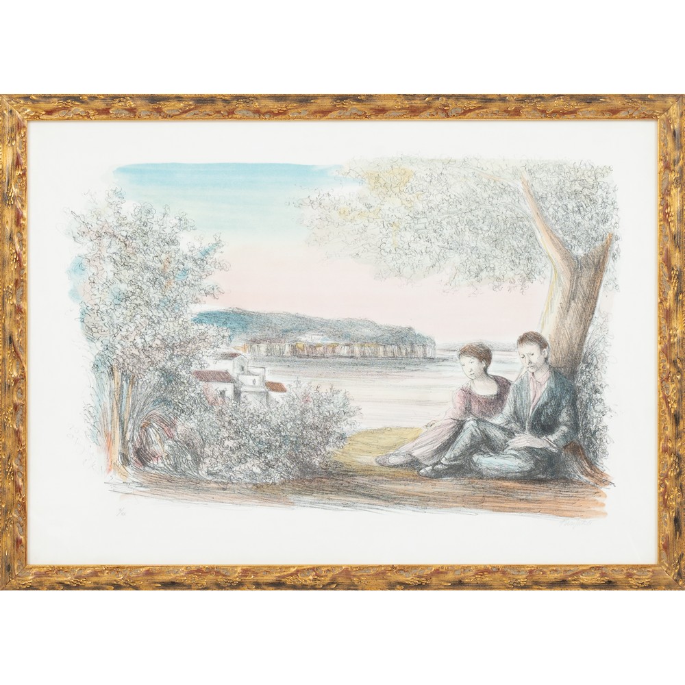 DOMENICO PURIFICATO, Paesaggio e figure, Litografia a colori