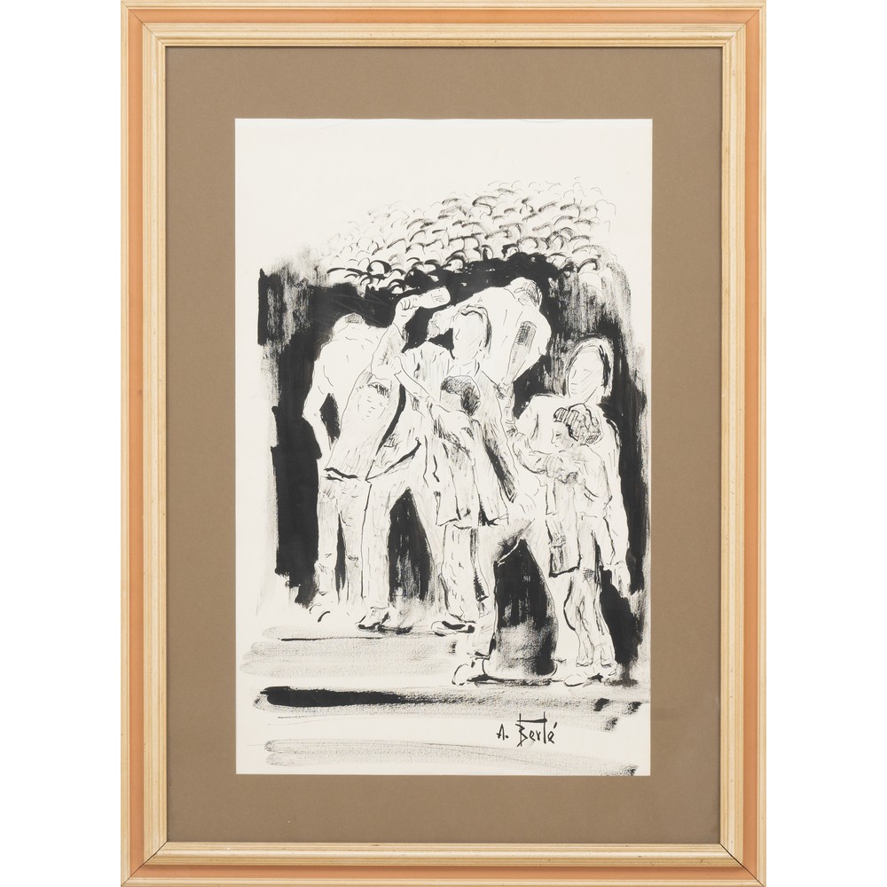ANTONIO BERTE', Folla, Tecnica mista su carta