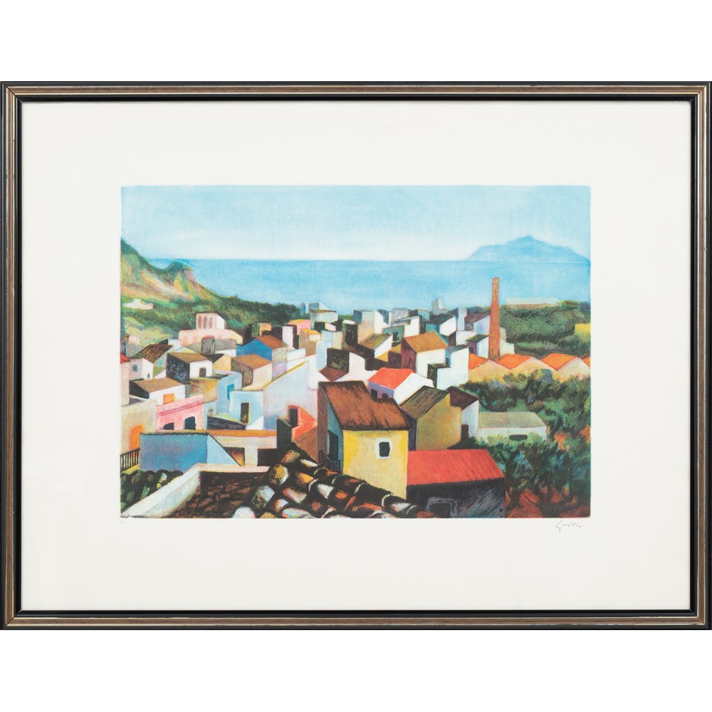RENATO GUTTUSO, Tetti di Palermo, Incisione a colori