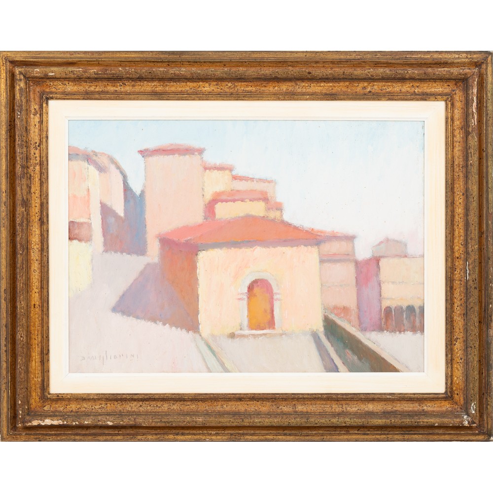 DINO MIGLIORINI, Scorcio di paese, Olio su masonite