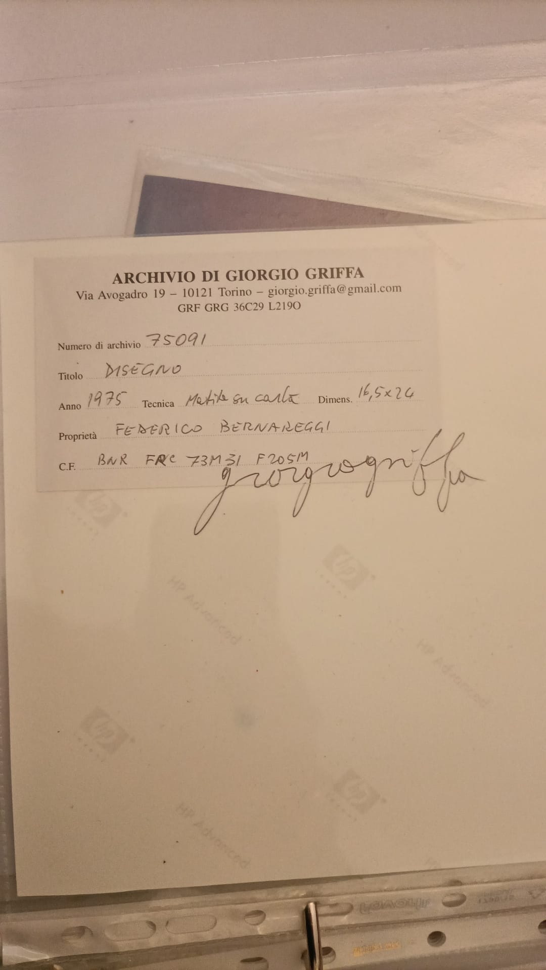 GRIFFA GIORGIO Torino (To) 1936 Disegno 1975 Mista su carta 16,50x24,00...