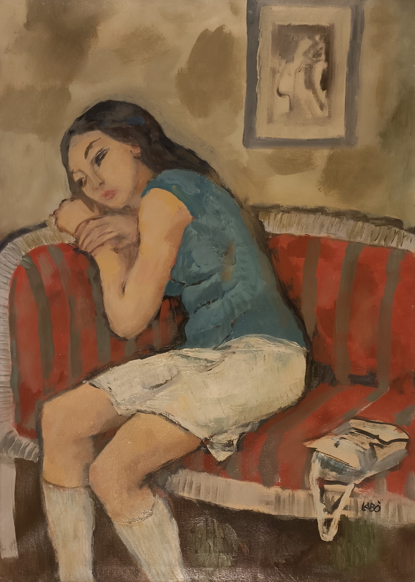 LABÒ SAVINIO Milano (Mi) 1899 Donna seduta 1973 Olio su tela 70,00x50,00...