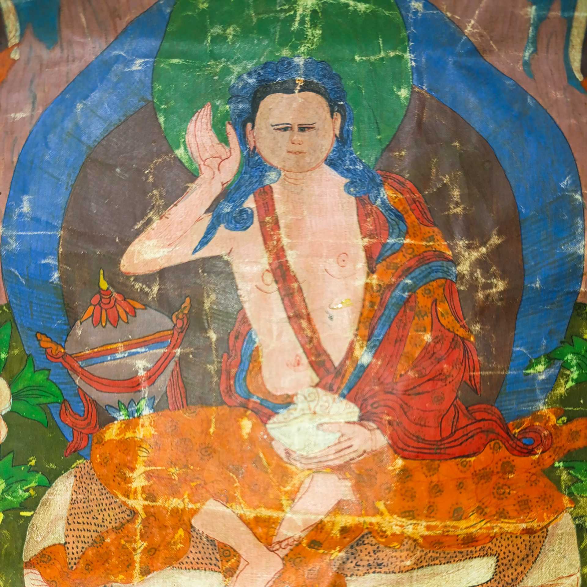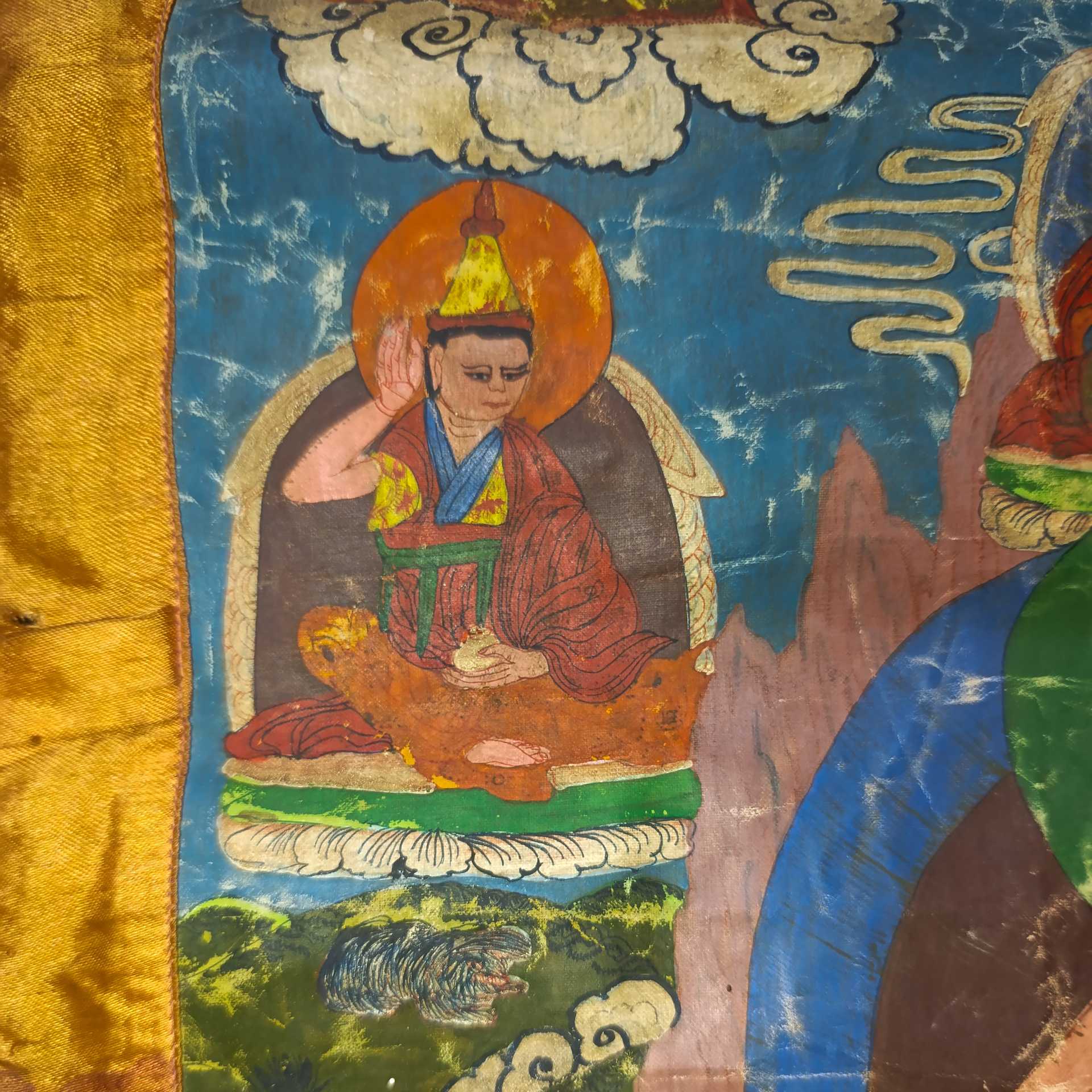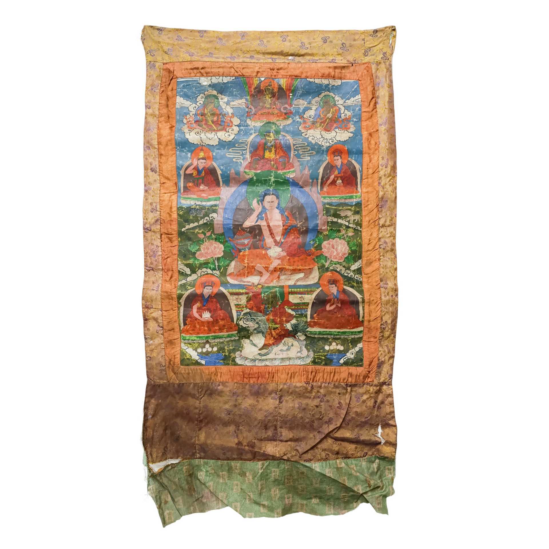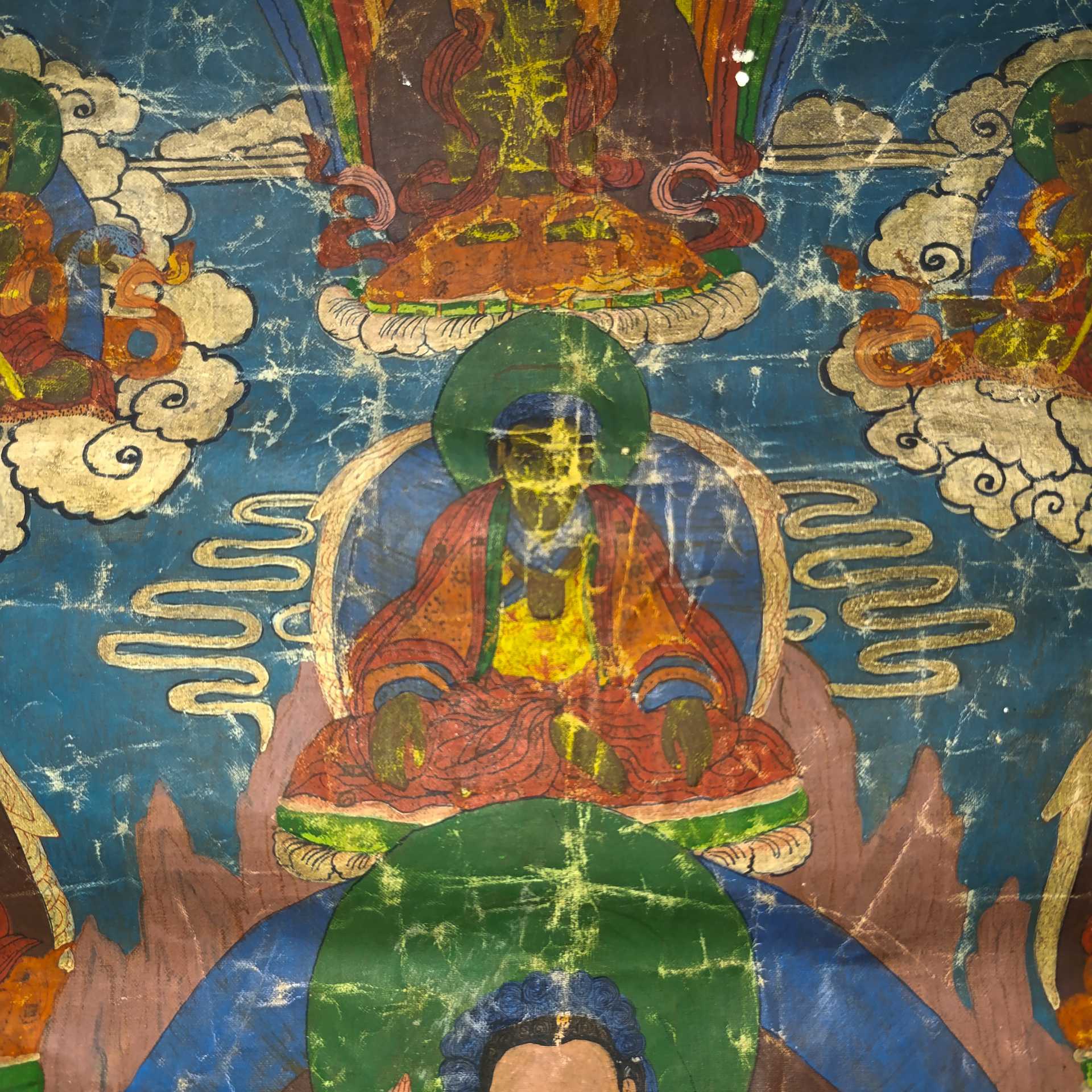 Thangka su stoffa con al centro Buddha ed intorno altre divinità, 19° secolo