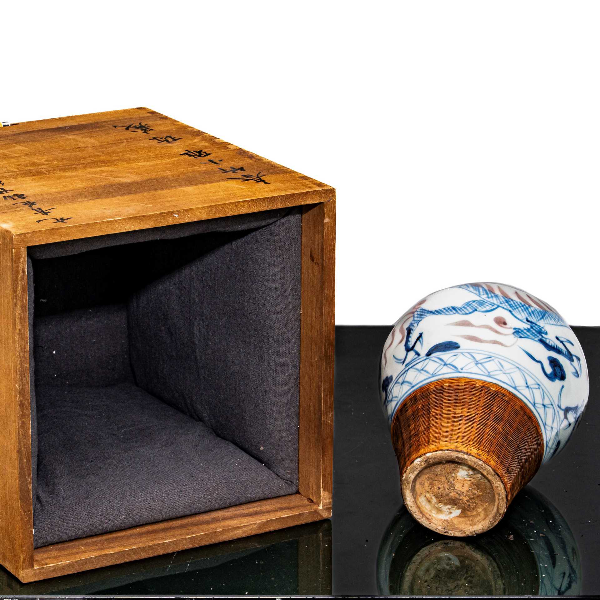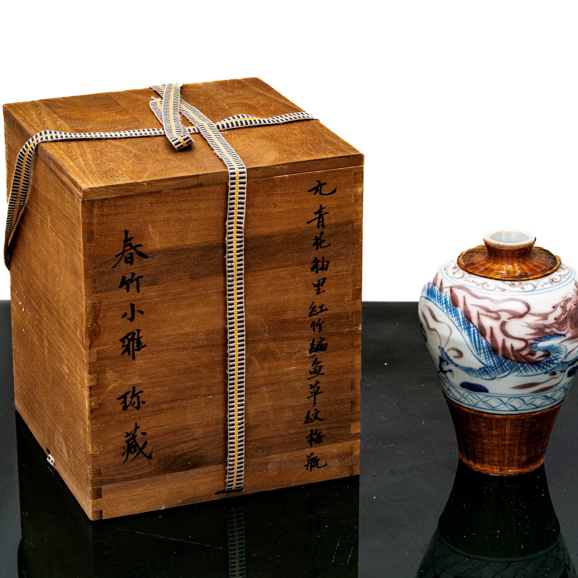 Vaso con decori di dragoni e dettagli in bamboo, Yuan , dinastia h cm 17 dimensioni scatola h cm 25X20X20 Dotato di scatola originale in legno con iscrizioni Dotato di scatola originale in legno con iscrizioni