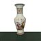 Vaso cinese in porcellana con base bianca e dipinto policromo firmato alla base e sul fronte h cm 48