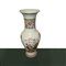 Vaso cinese in porcellana con base bianca e dipinto policromo firmato alla base e sul fronte