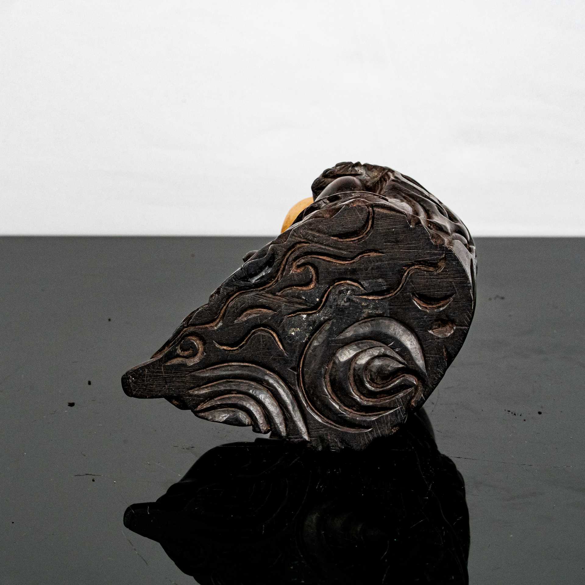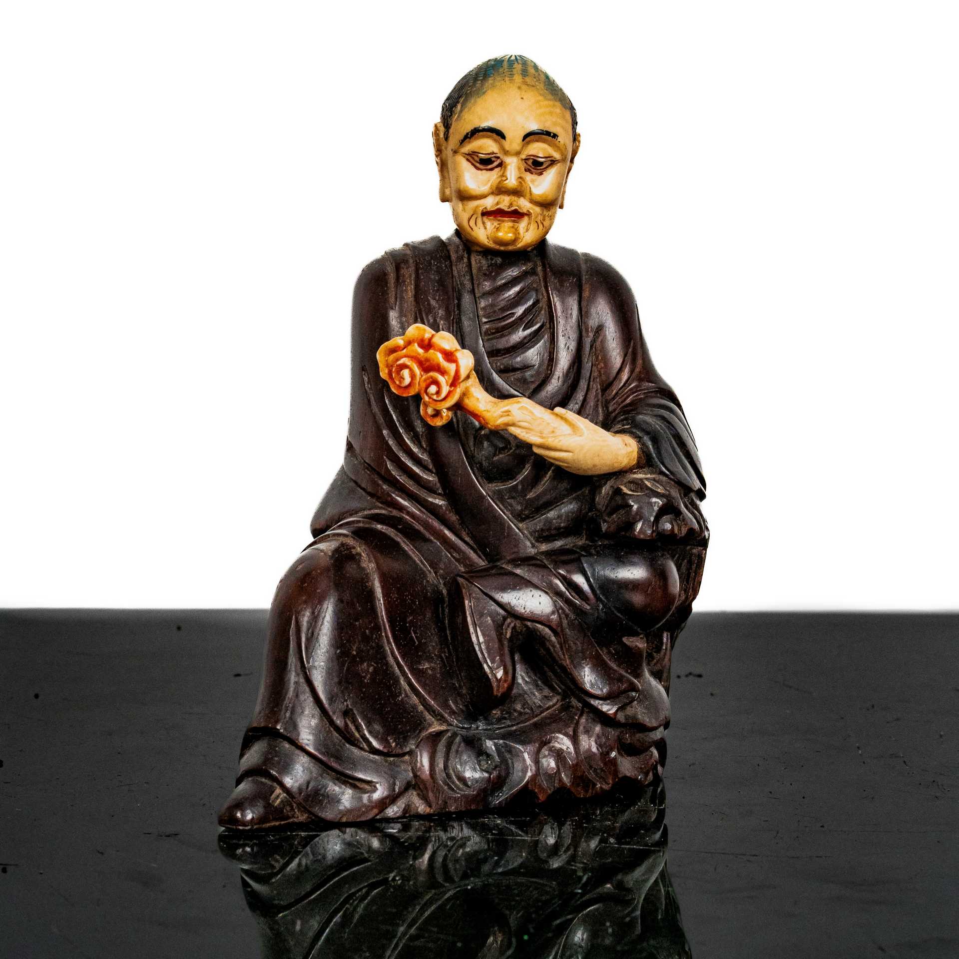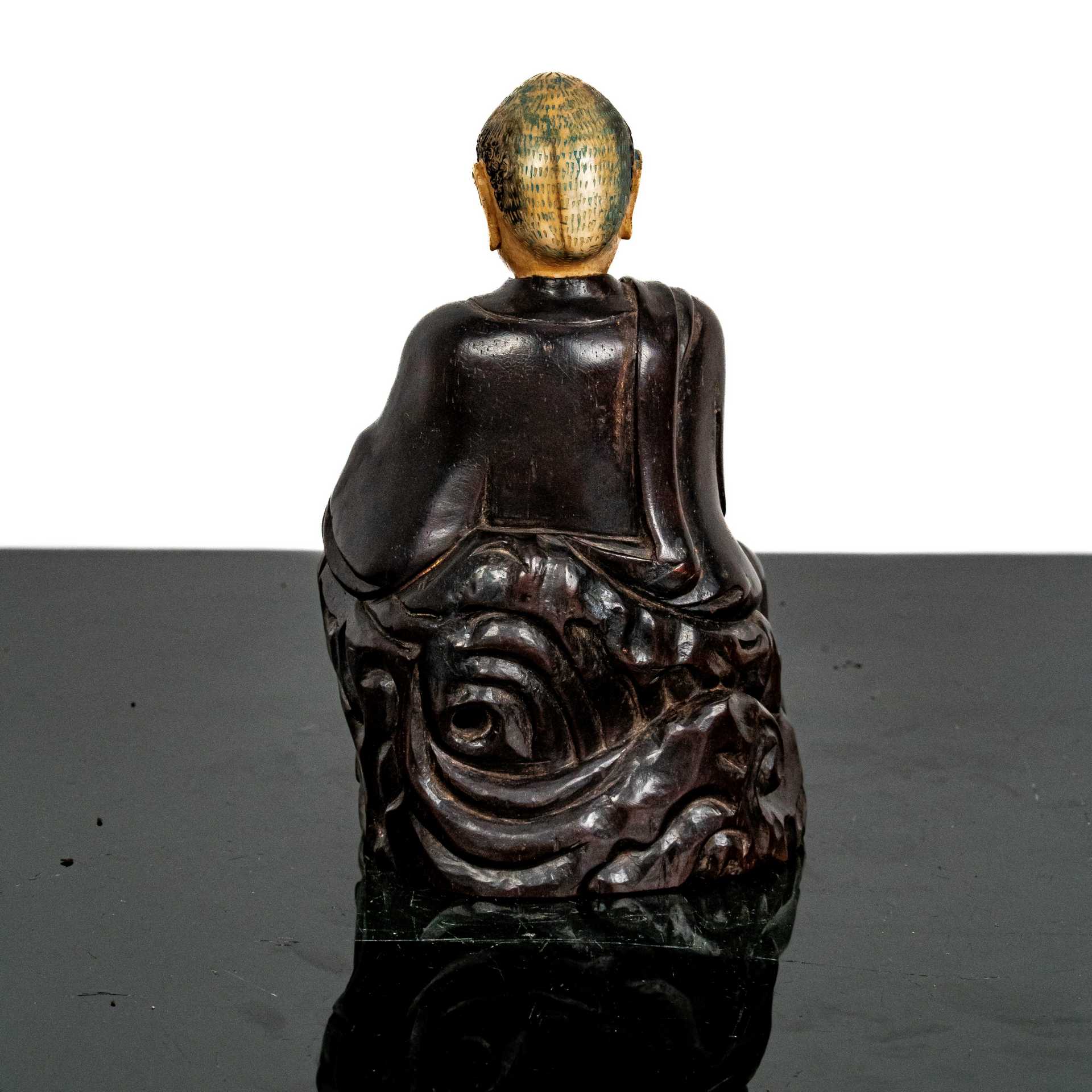 Arhat, scultura in legno policromo, Cina 19° secolo h cm 17