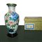 Coppia di vasi cloisonnet con fondo bianco e decori floreali con base in legno