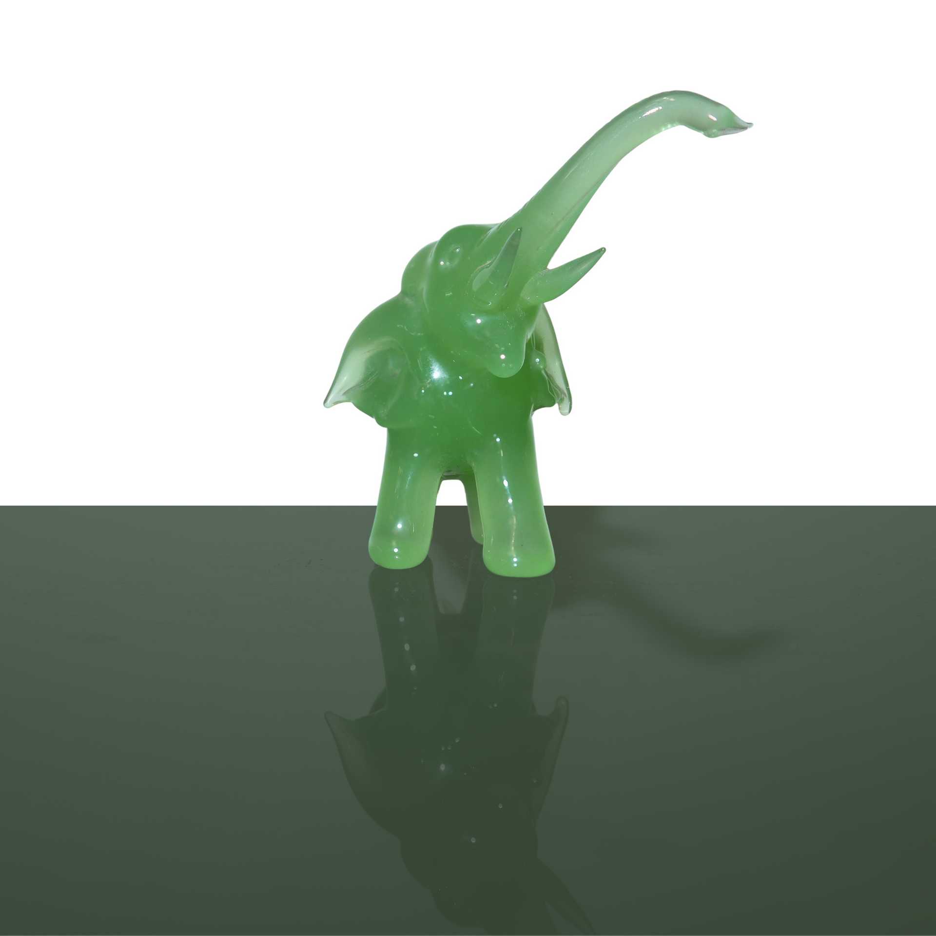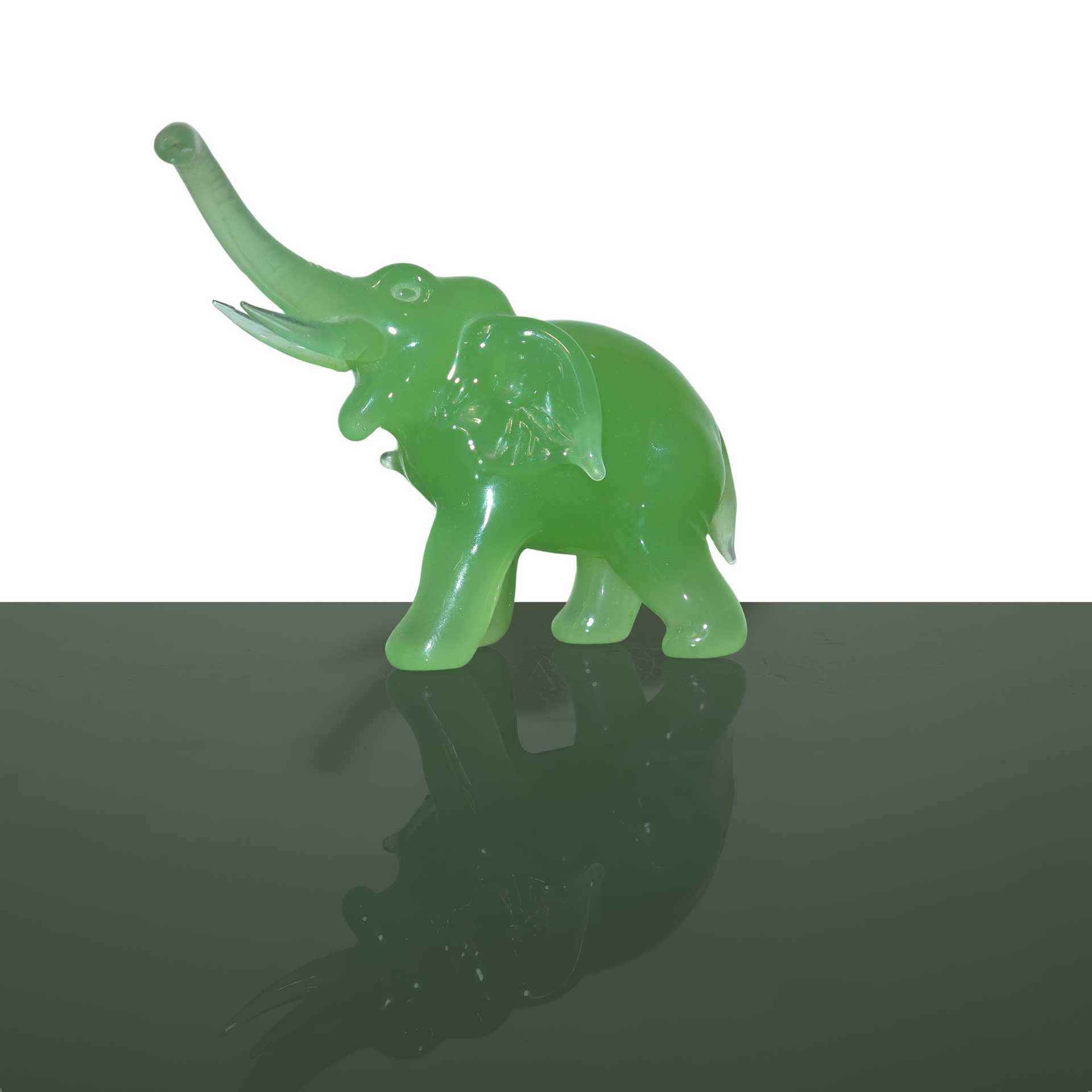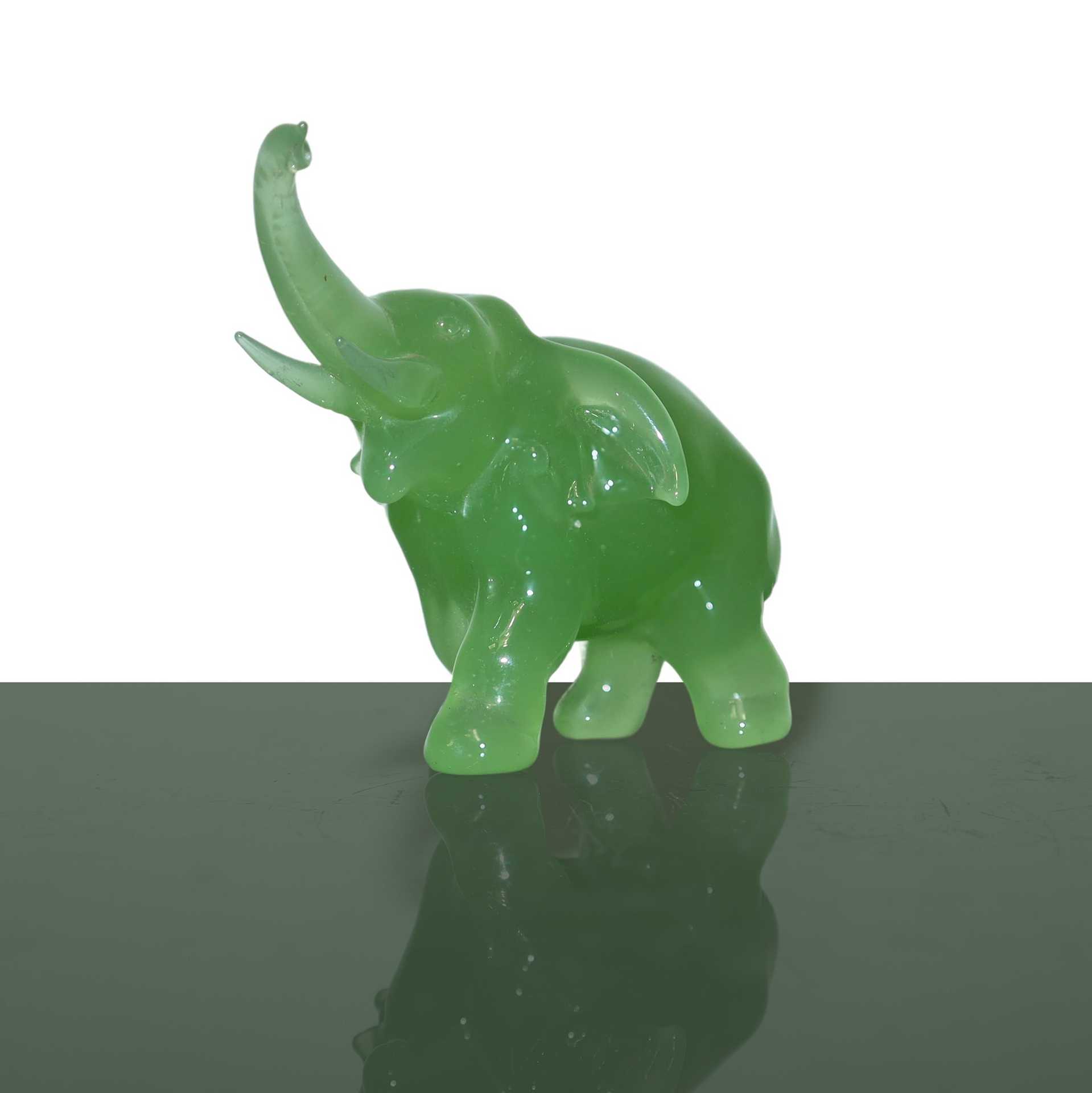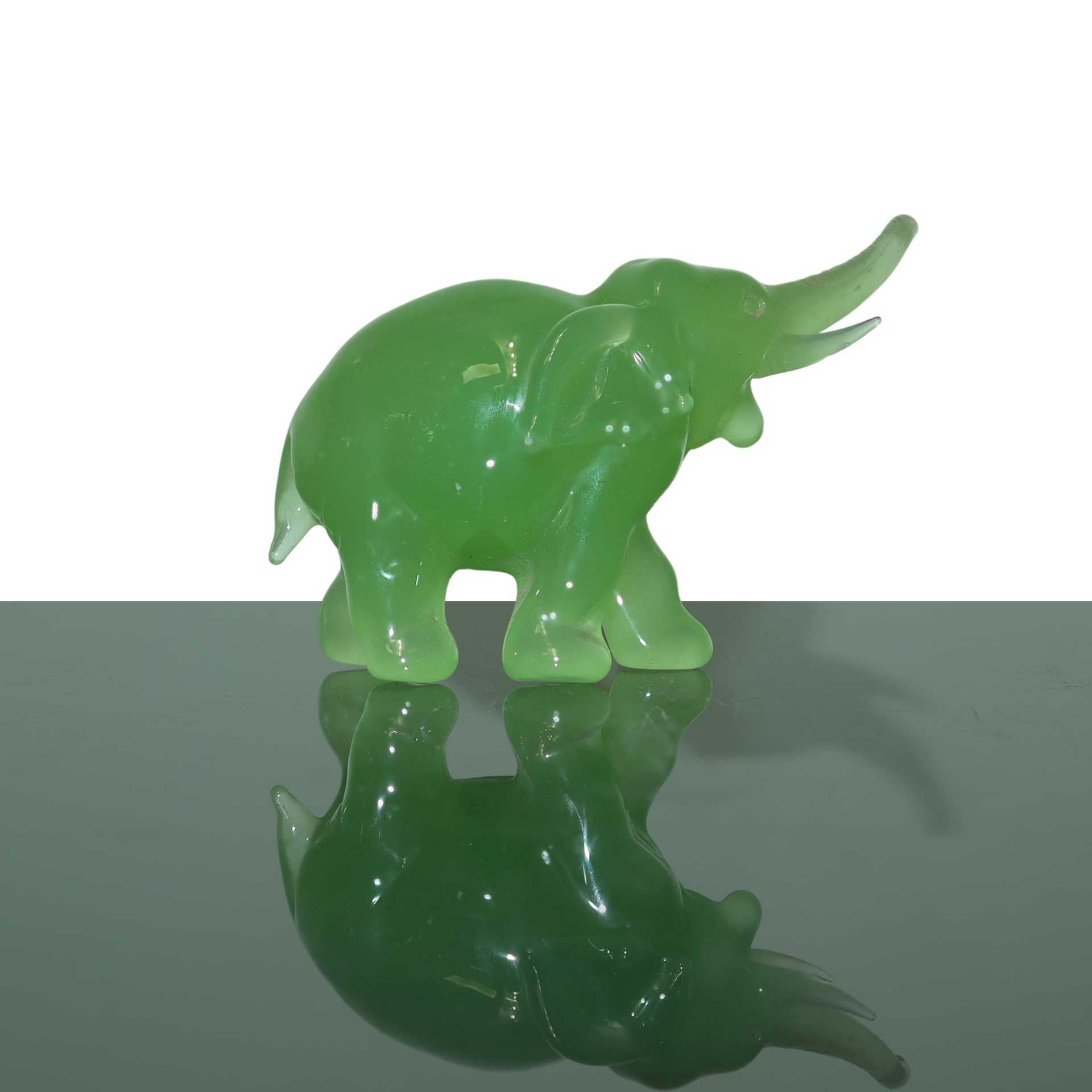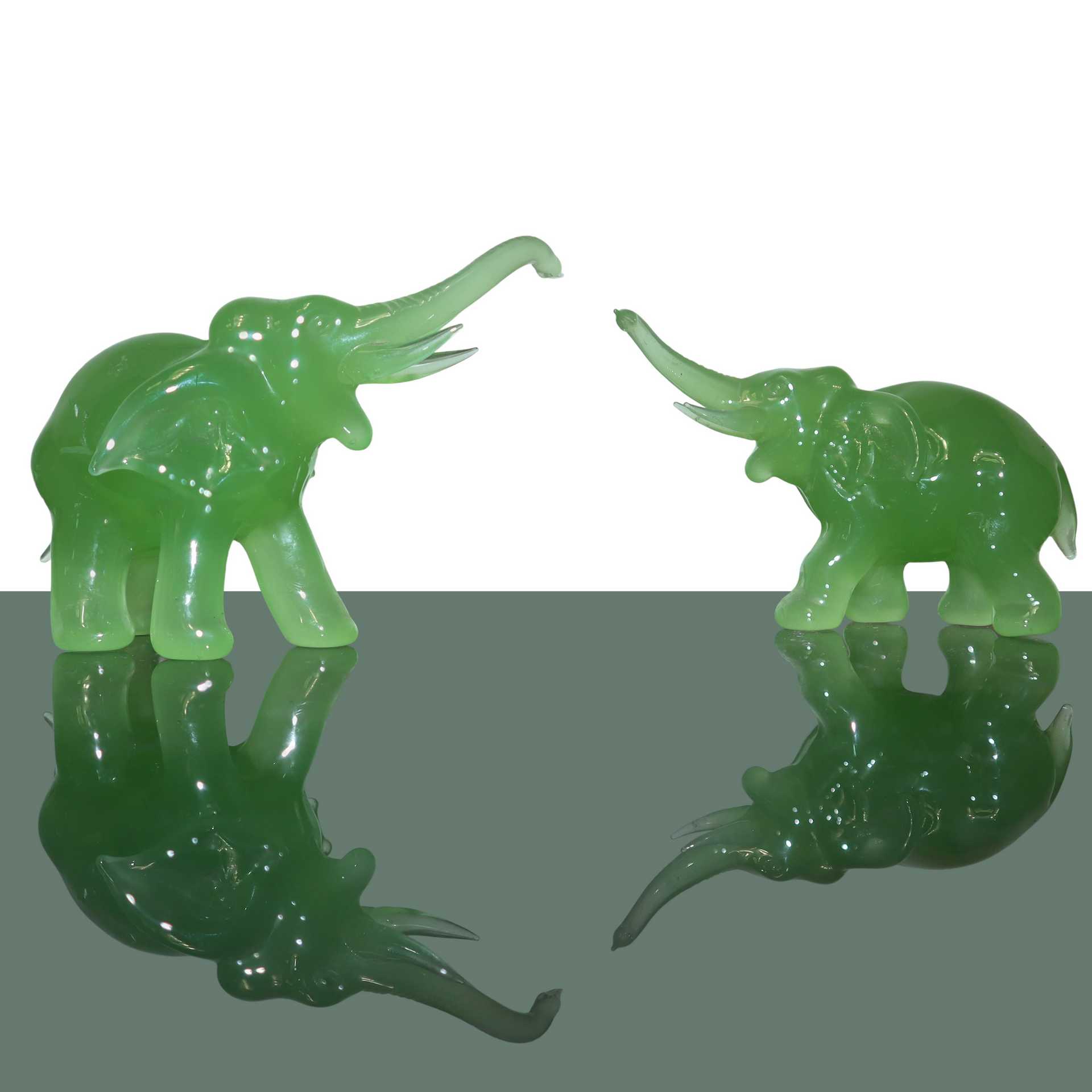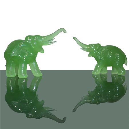 Coppia di piccoli elefanti in giada verde h cm 10X12