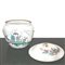 Zuppiera in porcellana bianca cinese dipinta a mano con decorazione di donne e bambini in giardino fiorito scritte in caratteri cinesi.