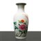 Vaso cinese di porcellana bianca con decoro floreale H cm 20.8x9 - con base H cm 23.9 Vase in porcellana bianca con decorazioni floreali policrome, uccello e iscrizioni con caratteri cinesi. Marchio con caratteri cinesi in rosso alla base. Base reggivaso in legno intagliato. Alcune macchie gialle sulla superficie. Vase in porcellana bianca con decorazioni floreali policrome, uccello e iscrizioni con caratteri cinesi. Marchio con caratteri cinesi in rosso alla base. Base reggivaso in legno intagliato. Alcune macchie gialle sulla superficie.