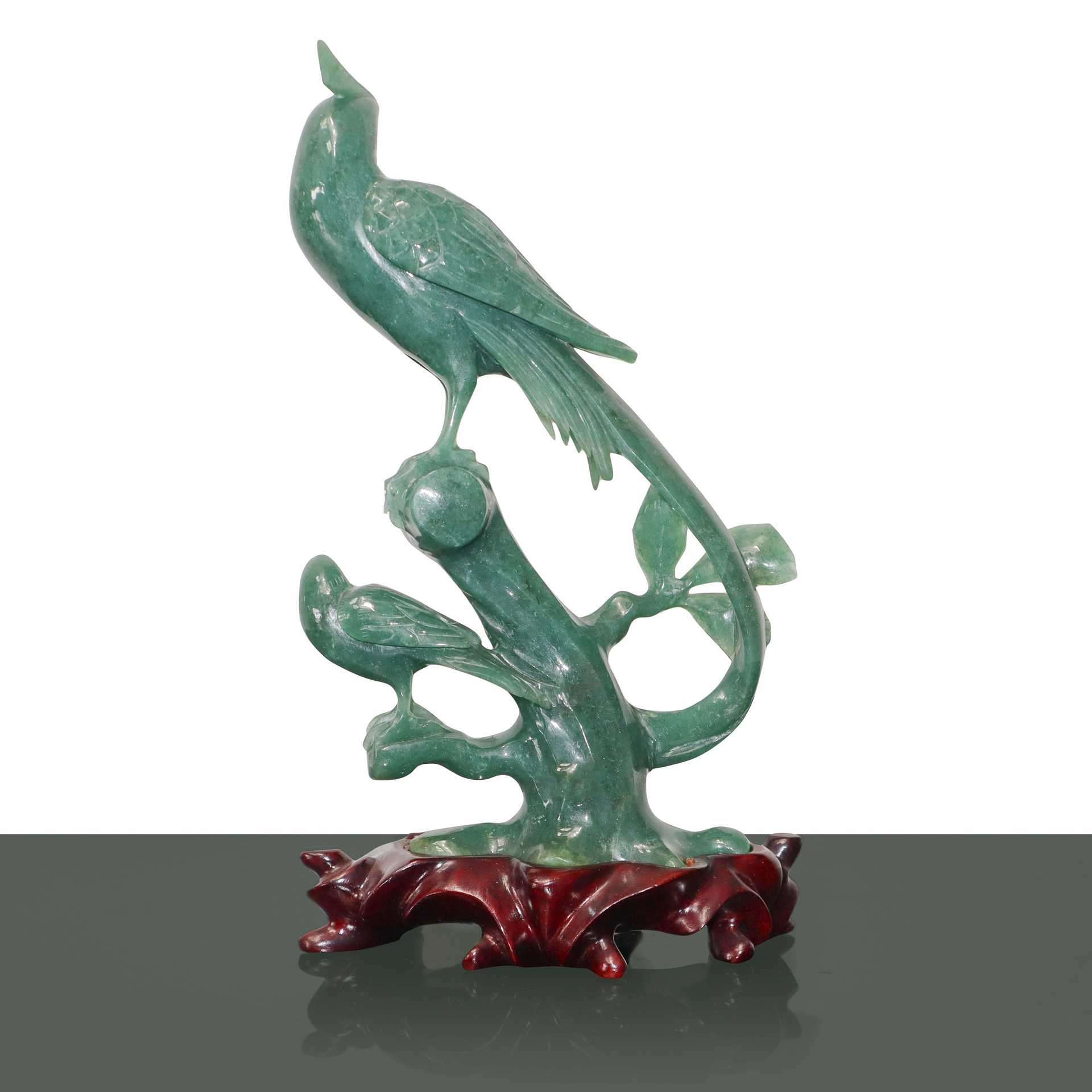 Scultura in giada raffigurante uccelli su un ramo H cm 24 x 13, Gr 602 In scatola originaleIn scatola originale