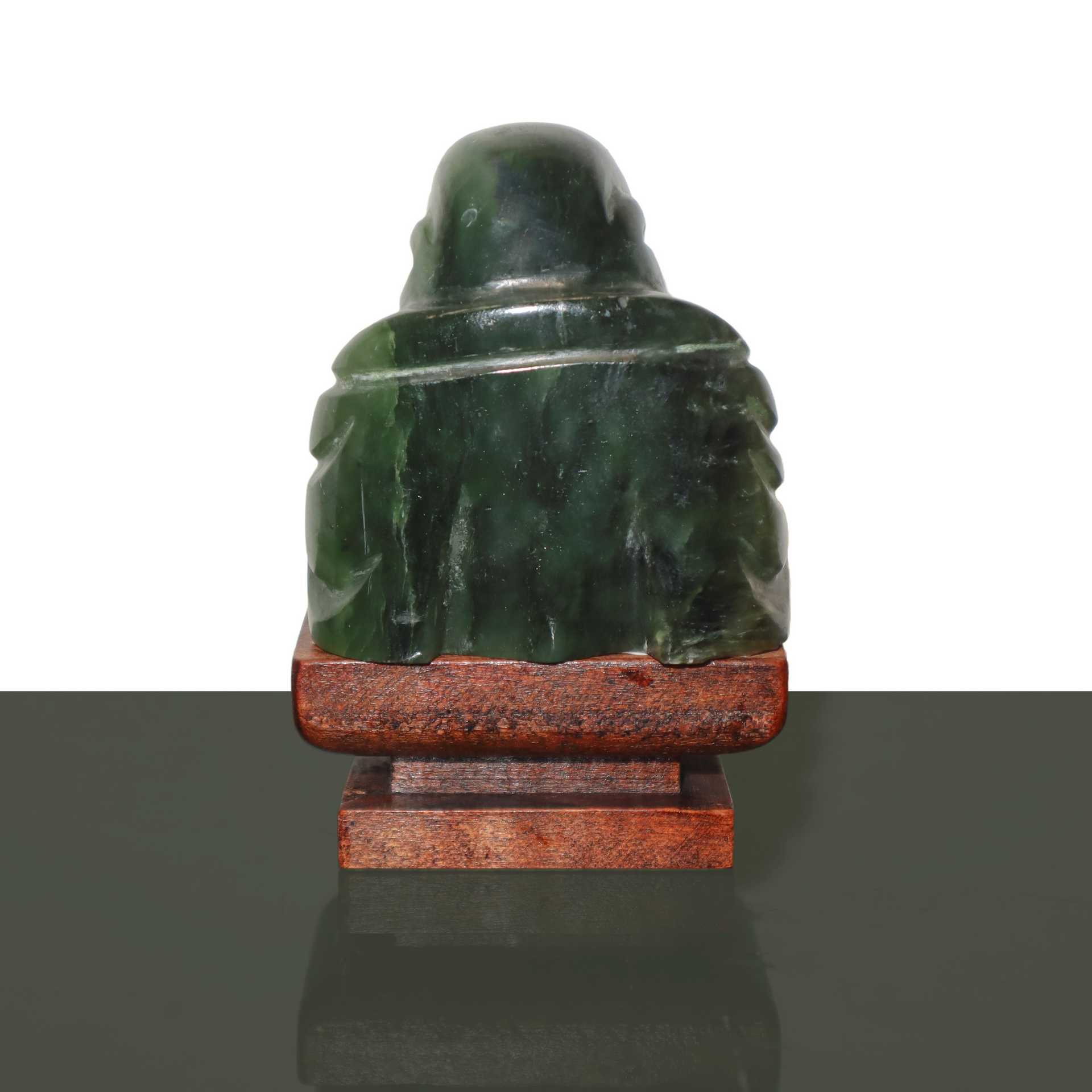 Piccolo buddha in giada spinacio cm 6,5 con base di legno cm 9,5