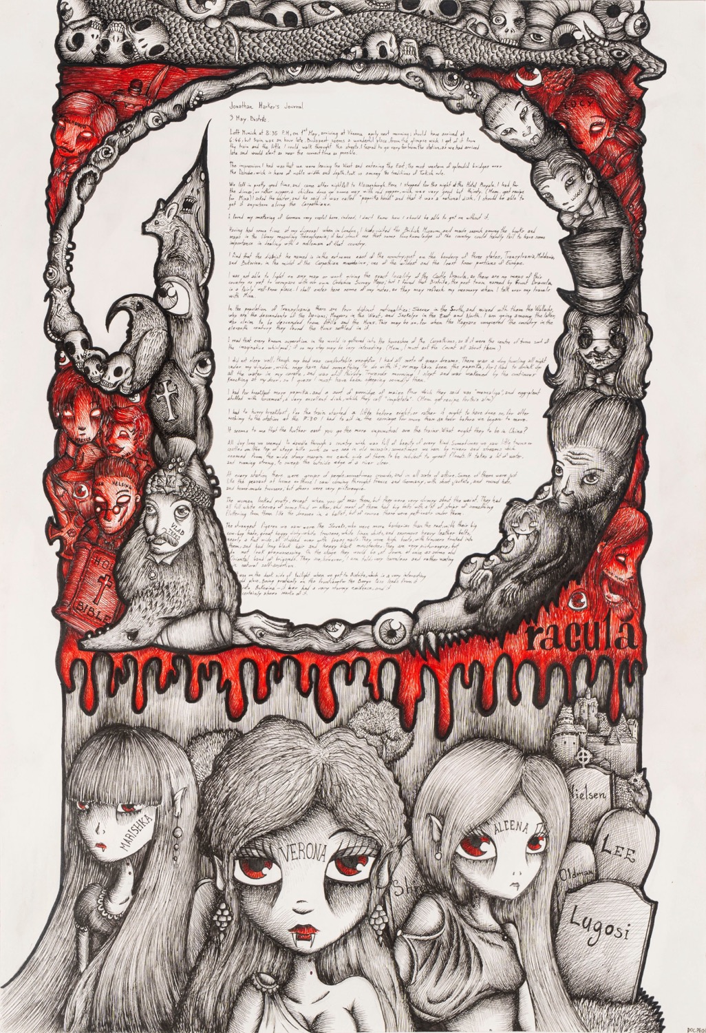 Illustrazione originale realizzata dall'artista friulano Dottor Pach come omaggio a Dracula e a tutti i suoi interpreti cinematografici. Firmata.