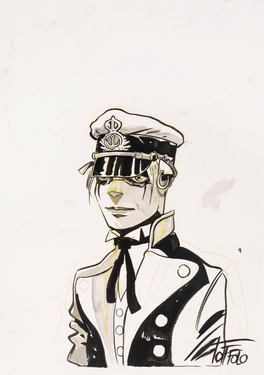 Disegno originale realizzato da Toffolo come omaggio al Corto Maltese di Hugo Pratt. Firmato.