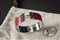 in metallo e smalto color rosso, cm 6 x 2, con sacchetto (nuovo e mai usato)in metallo e smalto color rosso, cm 6 x 2, con sacchetto (nuovo e mai usato)
