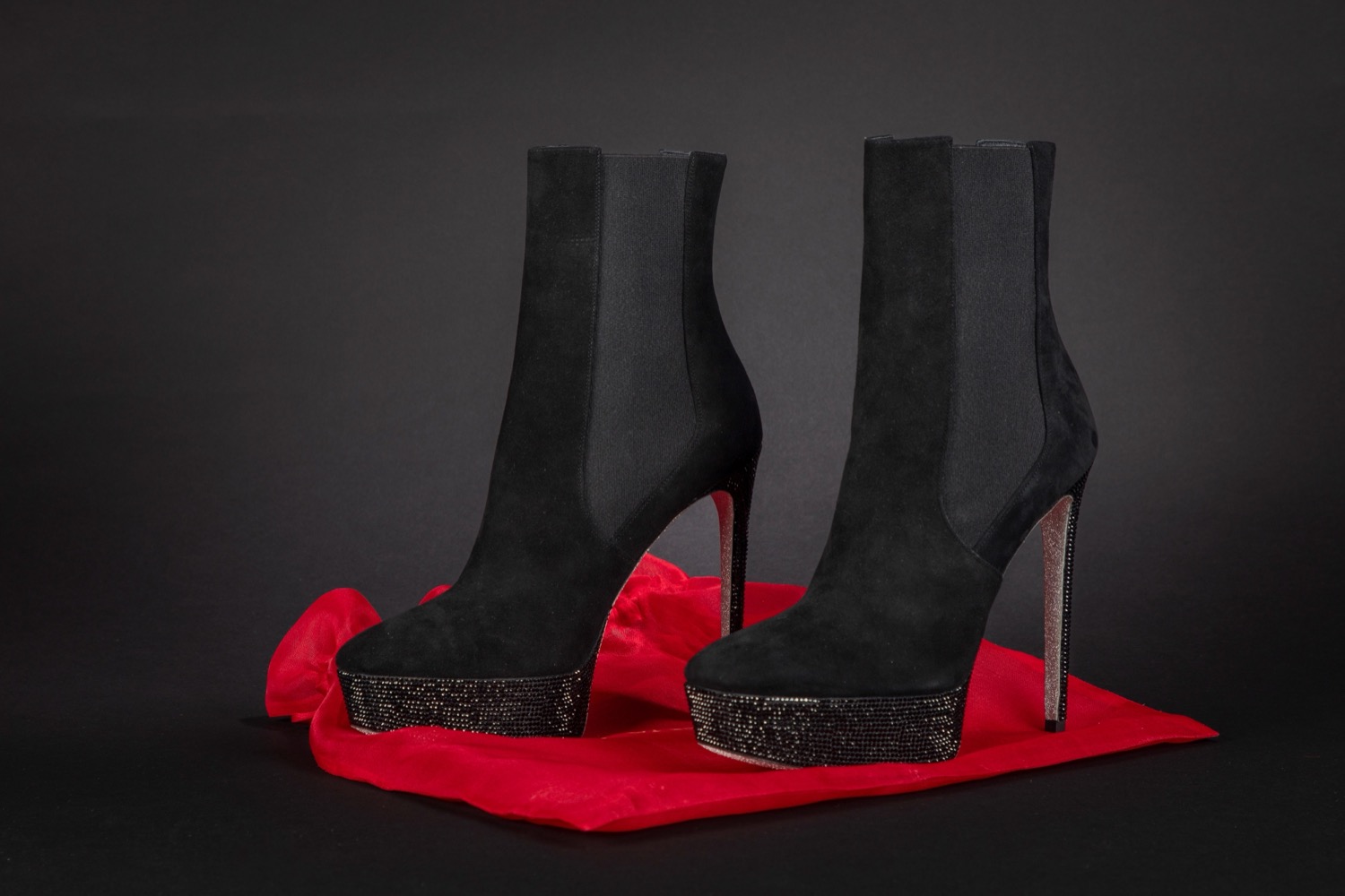in camoscio color nero, con plateau, suola glitterata, misura 40, tacco cm 14, con sacchetto (nuovi e mai usati)in camoscio color nero, con plateau, suola glitterata, misura 40, tacco cm 14, con sacchetto (nuovi e mai usati)