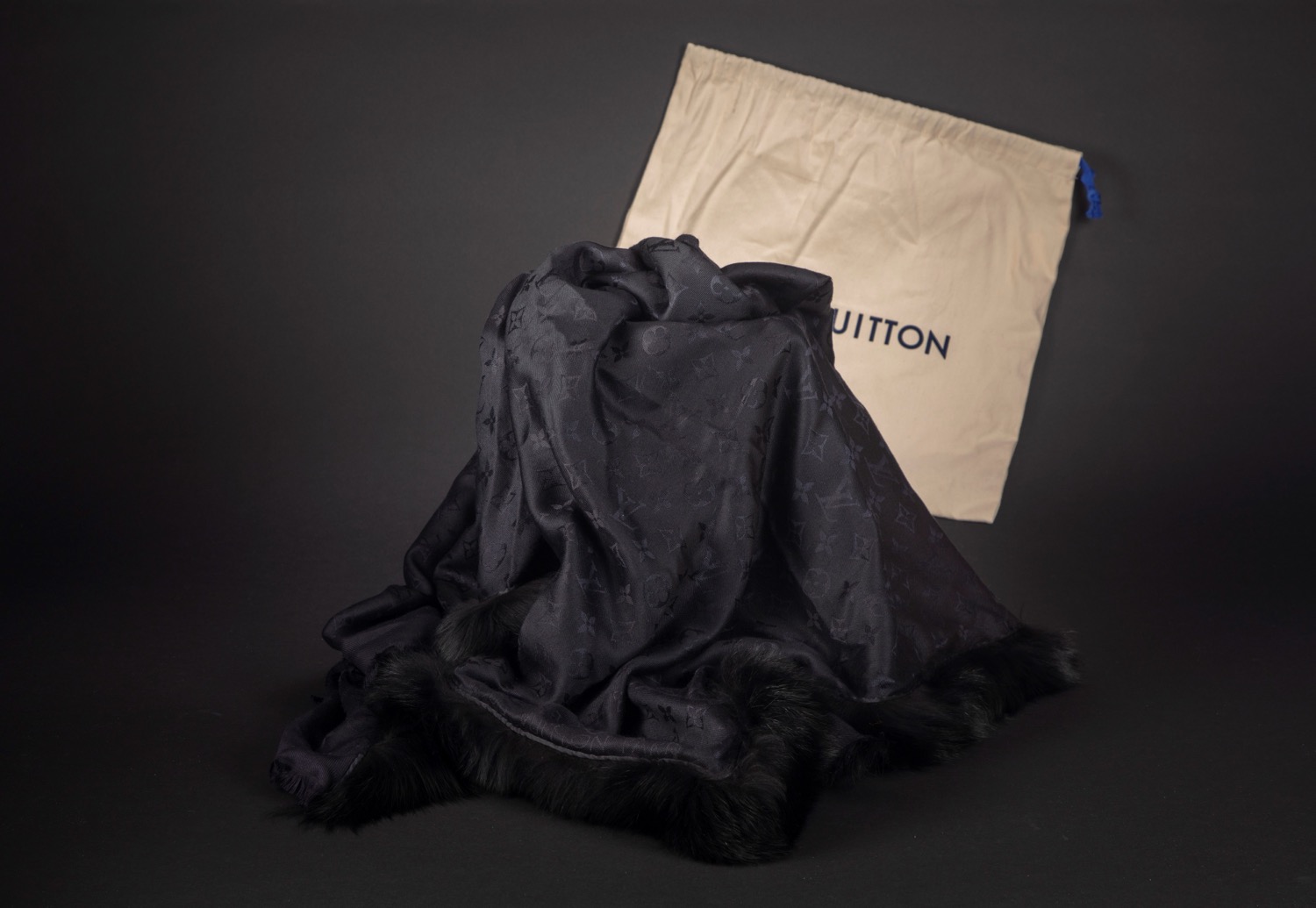 in seta e lana monogrammata, cm 140 x 140, con sacchetto (lievi difetti)in seta e lana monogrammata, cm 140 x 140, con sacchetto (lievi difetti)