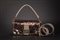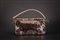 Borsa in paillettes color tortora, interno in pelle e raso color fuxia, tracolla staccabile, dettagli in metallo dorato, cm 27, con sacchettoBorsa in paillettes color tortora, interno in pelle e raso color fuxia, tracolla staccabile, dettagli in metallo dorato, cm 27, con sacchetto