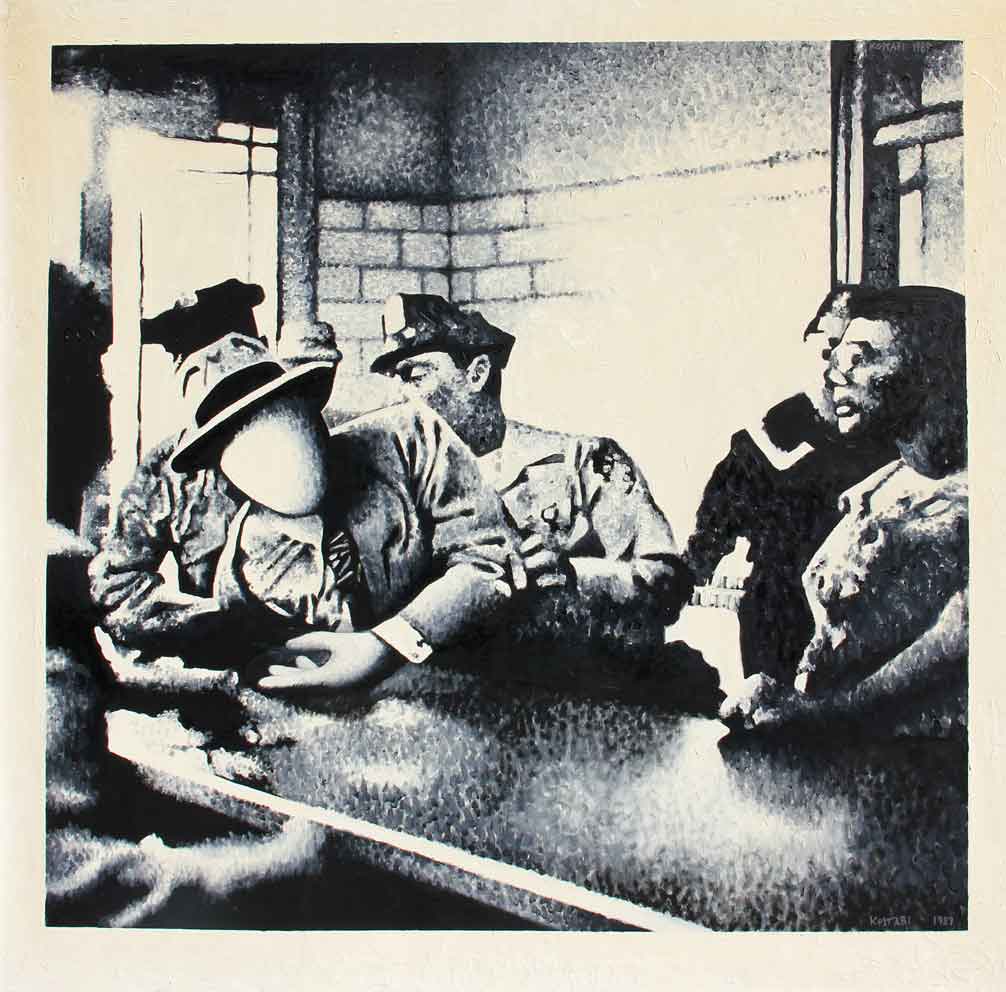 Mark KOSTABI Los Angeles 1960 Silent right, 1989 olio su tela oil on canvas cm. 122x122 Bibliografia | Bibliography M. Kalev, ‘Kostabi the early years’, Vanity Press, New York, 1990, p. 398 Firma, data ‘Kostabi, 1989’ (in basso a destra) Firma, titolo, data, misure, data ‘Kostabi, Silent right, 1989, 48x48’’, 11-11-92 Aculeate’ (al retro) Signed, dated ‘Kostabi, 1989’ (lower right) Signed, titled, dated, sized, dated ‘Kostabi, Silent right, 1989, 48x48’’, 11-11-92 Aculeate’ (on the reverse)