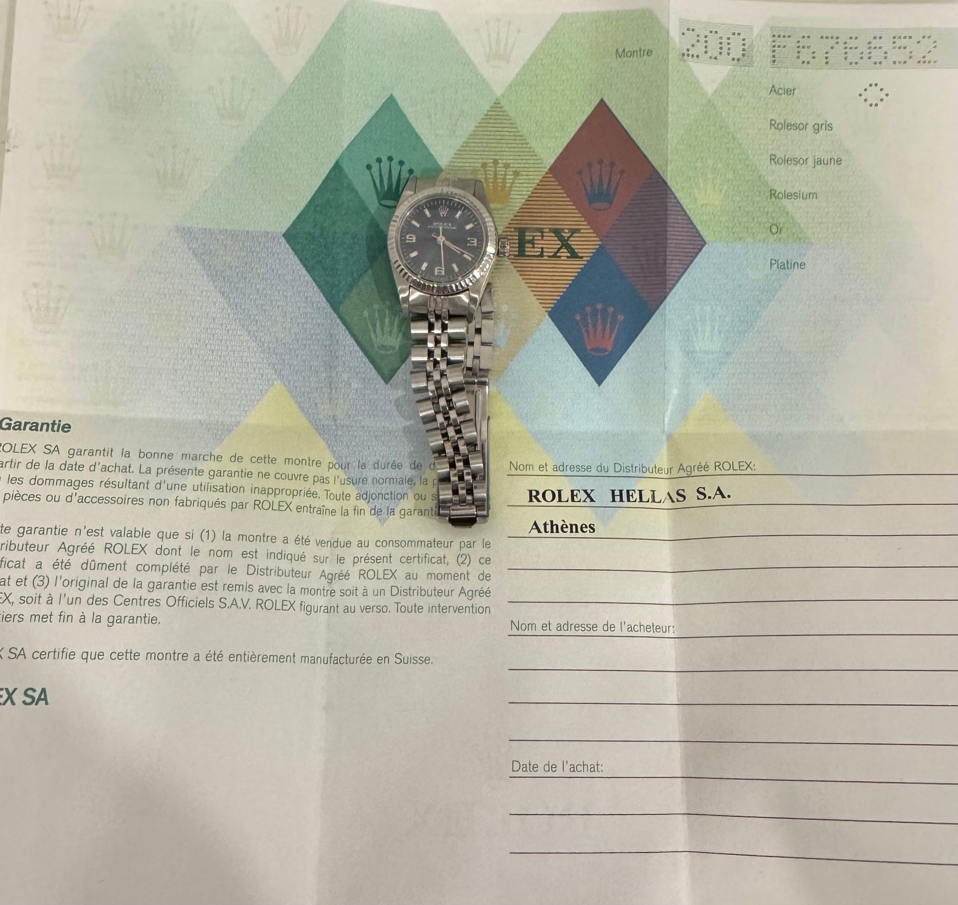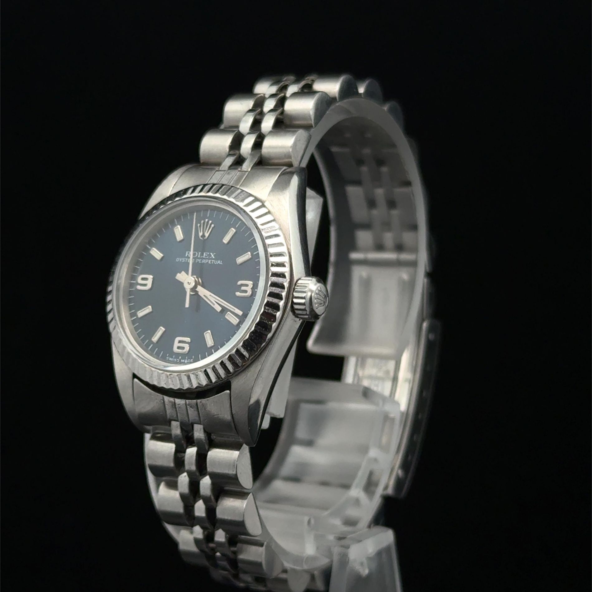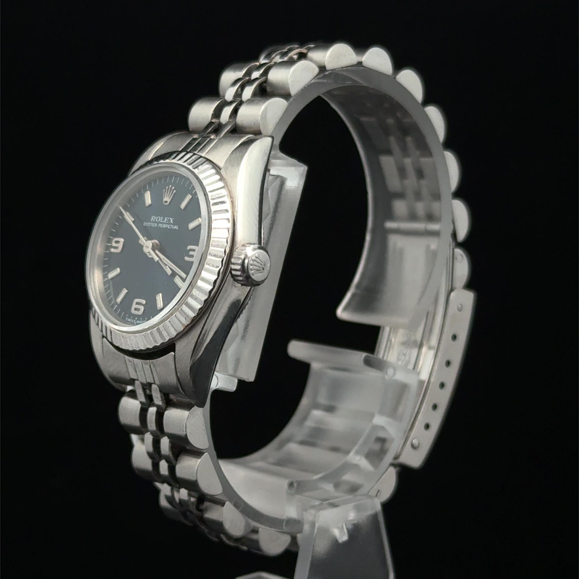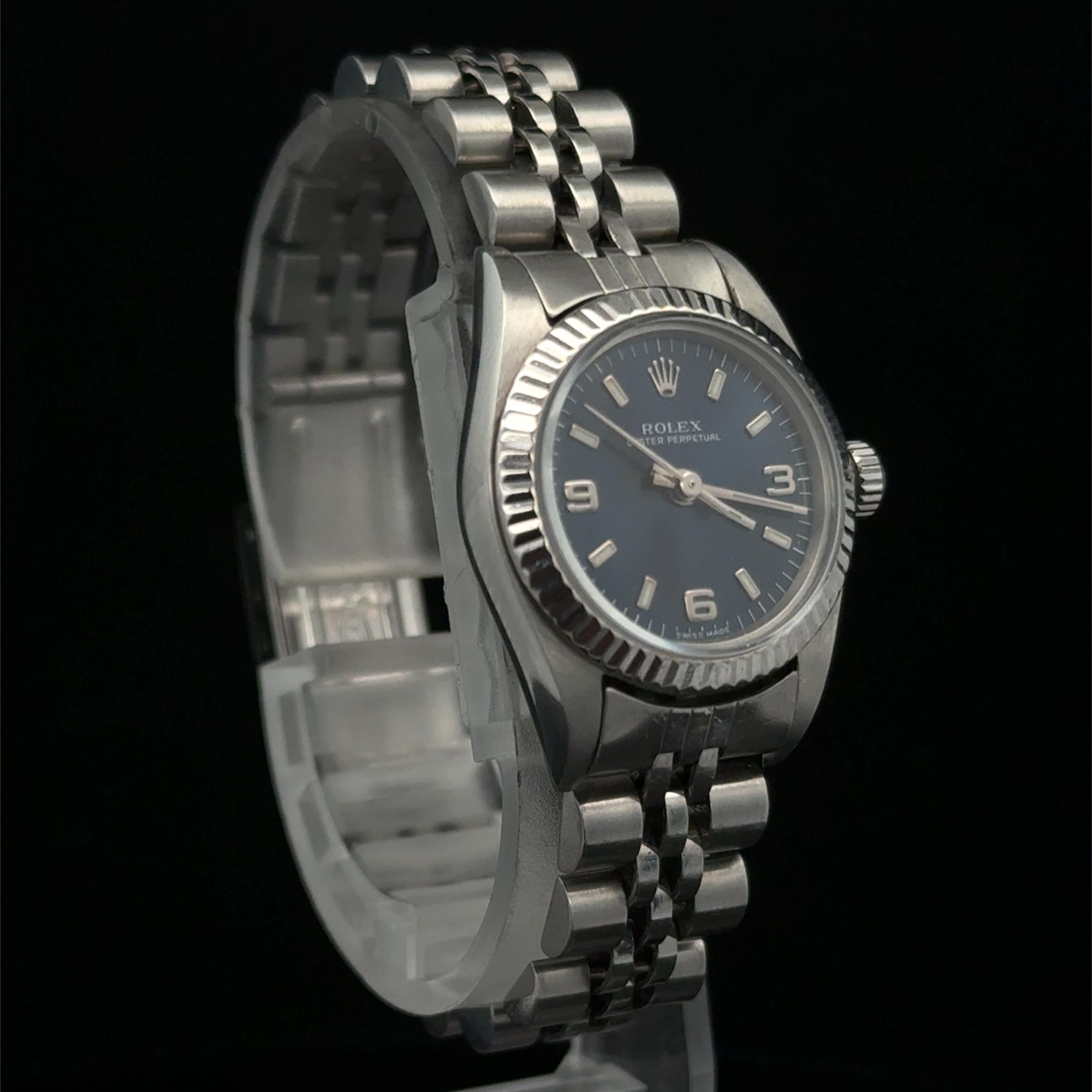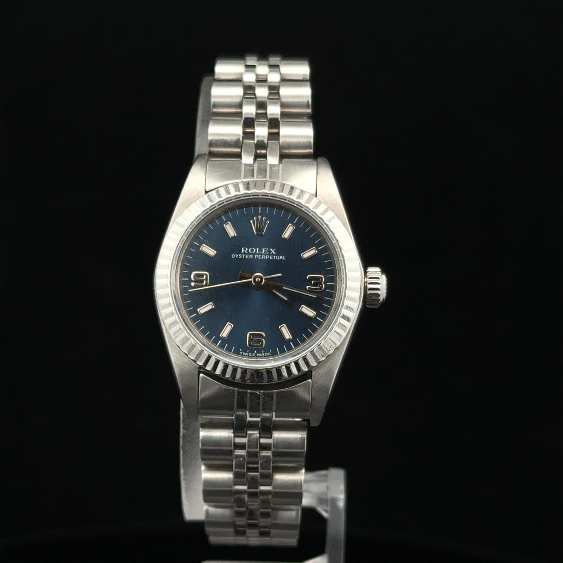Marca Rolex Modello (Orologio) Oyster Perpetual Numero di referenza 76080 Carica Automatico Materiale della cassa Acciaio Materiale cinturino Acciaio Anno di produzione 2004 Condizione Usato (Ottimo) L'articolo presenta segni di usura lievi, come ad esempio graffi leggeri, ma non percepibili al tatto. Corredo Senza scatola originale, documenti originali Rolex Materiale della cassa Acciaio Diametro 26mm Materiale lunetta Acciaio Vetro Vetro zaffiro Cinturino Materiale cinturino Acciaio Colore cinturino Acciaio Chiusura Déployante Materiale chiusura Acciaio Garanzia di un anno del negozio