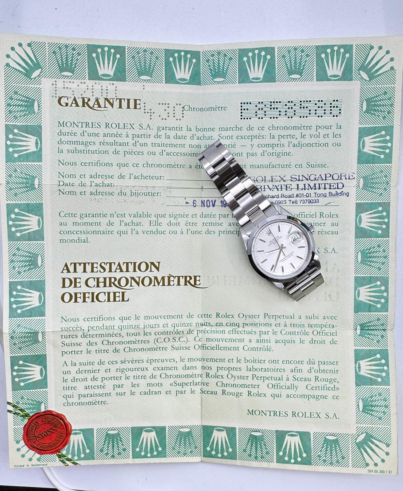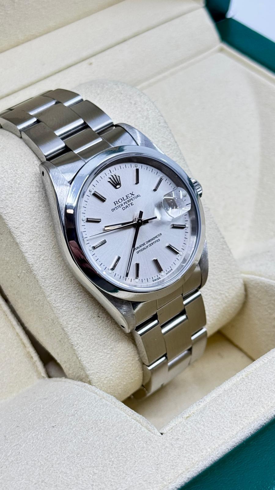 Marca Rolex Modello oyster perpetual date Ref 15200 Anno 1990 Condizione usato Misura 34 Vetro zaffiro Cinturino oyster Corredo Garanzia Rolex, no box la scatola utilizzata solo per fotografie non in vendita