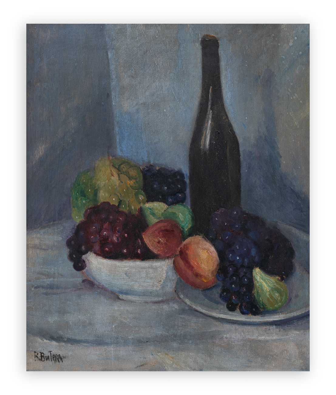 REMIGIO BUTERA (1903-1968) - Natura morta con la bottiglia e la frutta, 1933