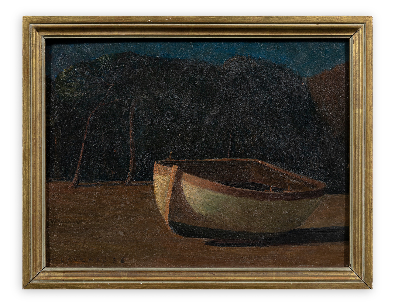 WALTER LAZZARO (1914-1989) - Barca e pini (Rapallo), 1956