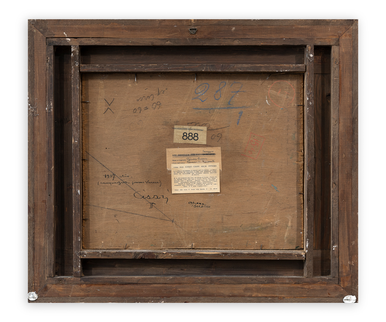 Etichetta della 'XXI Biennale - 1938 - XVI - Concorsi' al retro