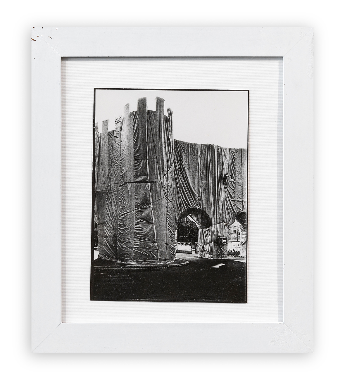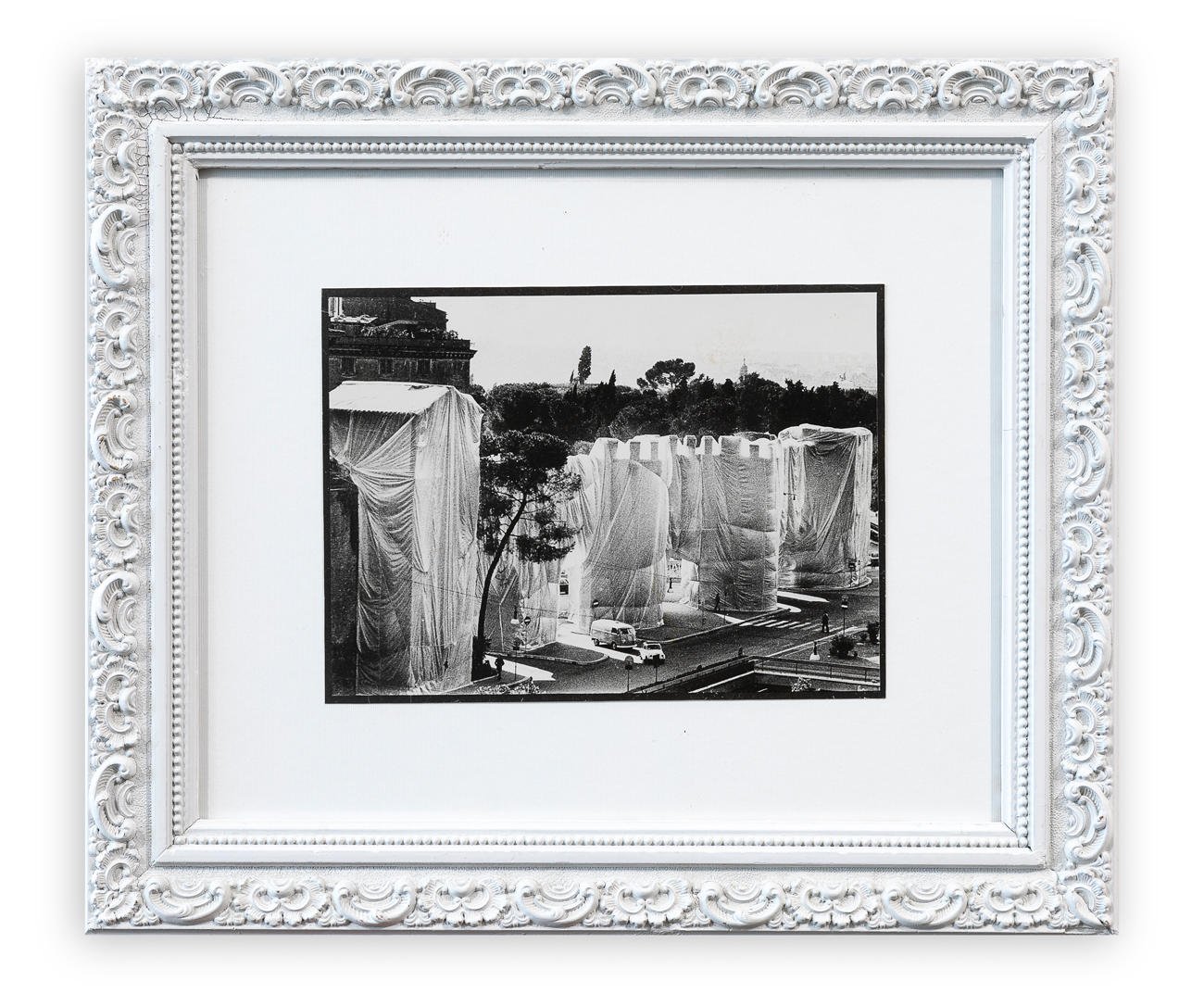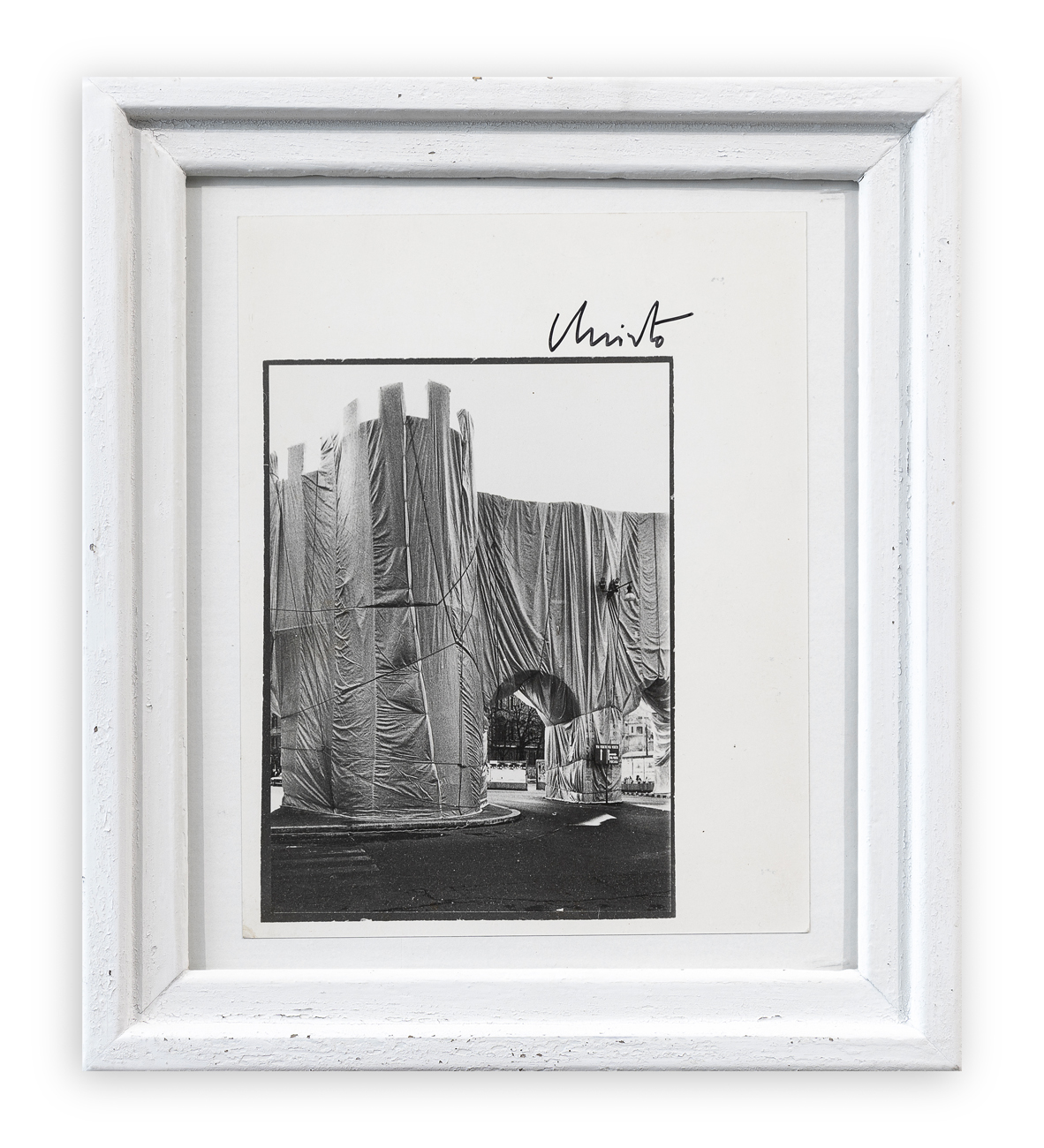 3 fotografie in bianco e nero di Porta Pinciana di cui una recante firma a pennarello al fronte e la busta di spedizione originale inviata da Christo & Jeanne-Claude ad una collezionista Milanese nell'ottobre 1987
