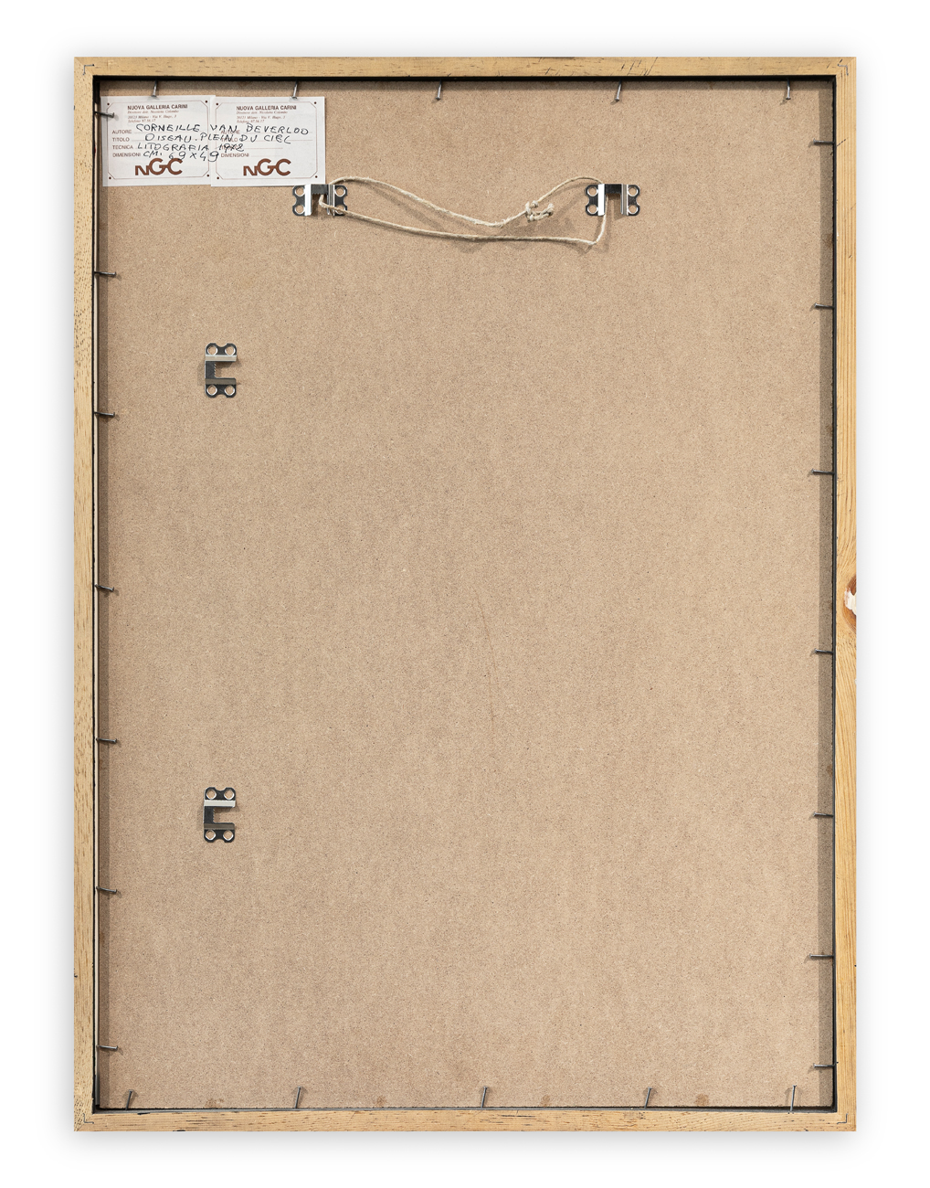 Etichette della Galleria Nuova Carini (MI) al retro della tavola protettiva