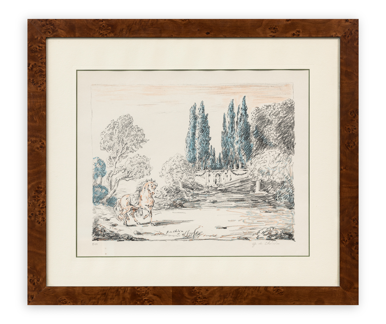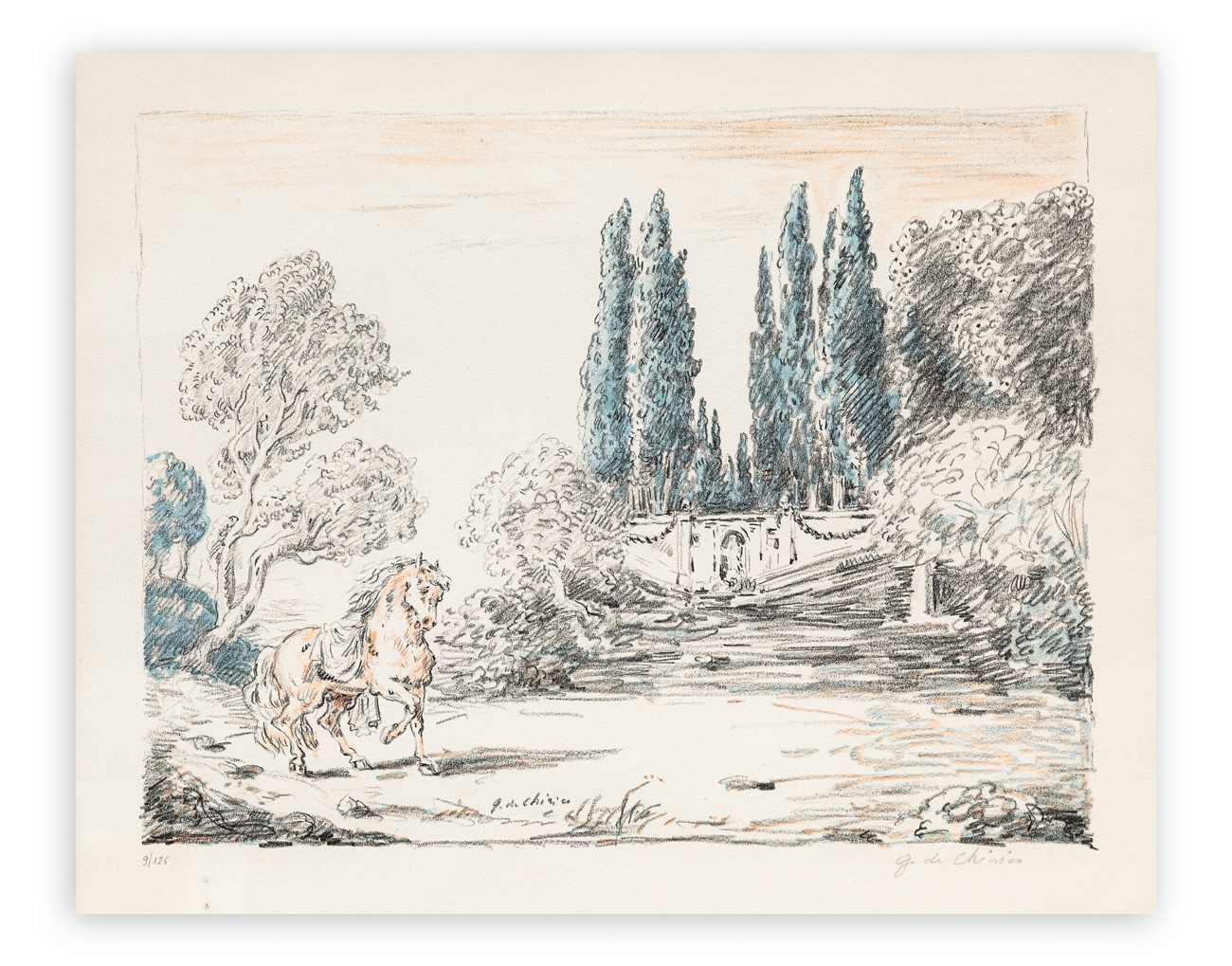 Opera originariamente parte della cartella 'Cavalli e Ville' contenente 6 litografie di Giorgio De Chirico
