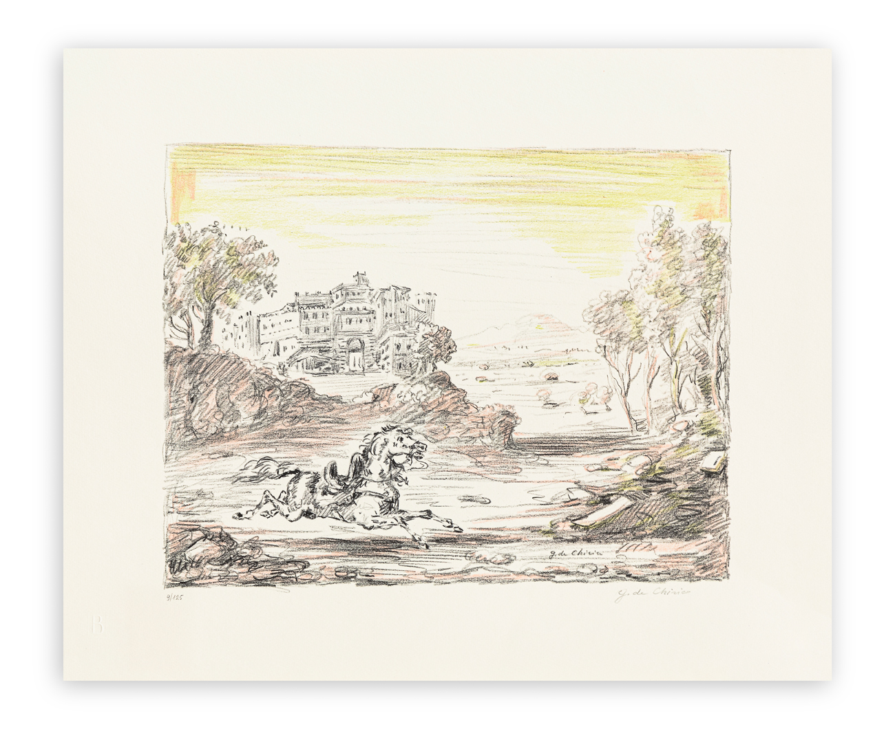 Opera originariamente parte della cartella 'Cavalli e Ville' contenente 6 litografie di Giorgio De Chirico