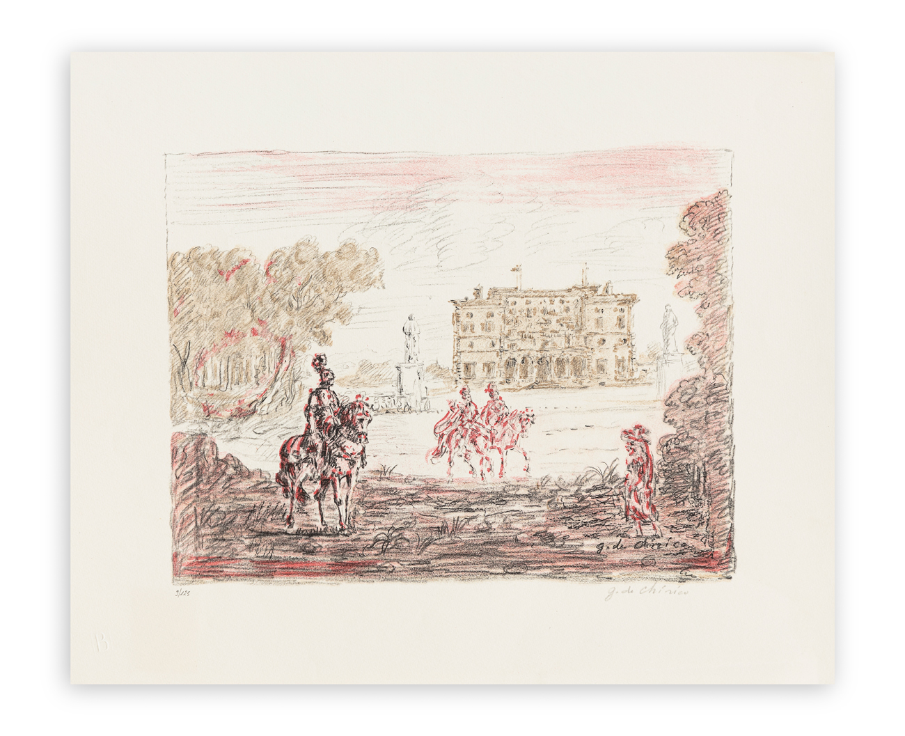 Opera originariamente parte della cartella 'Cavalli e Ville' contenente 6 litografie di Giorgio De Chirico